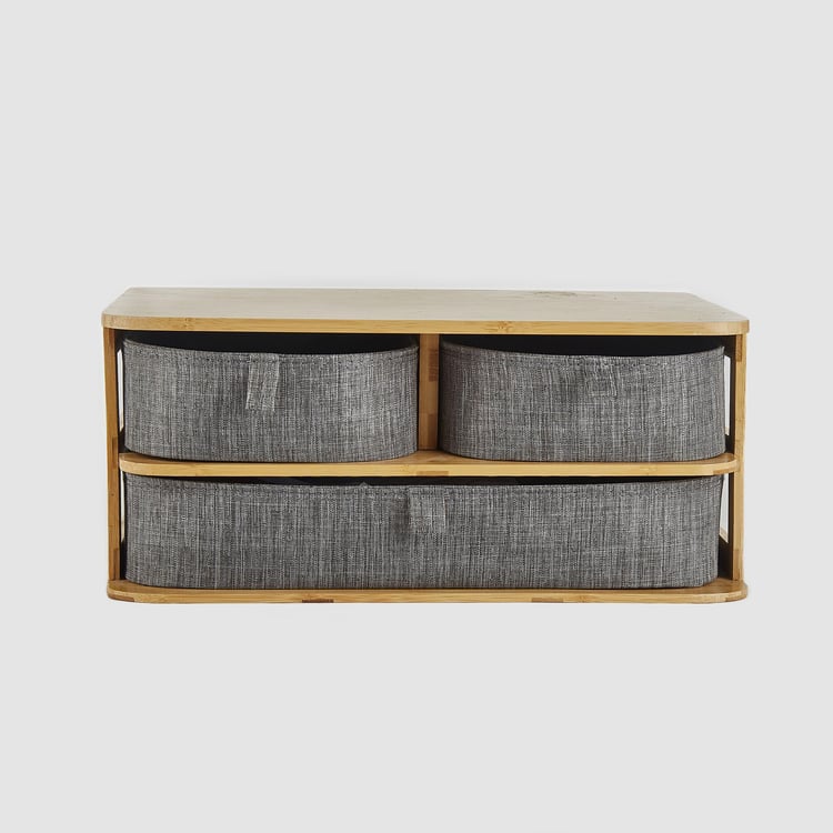 This storage with drawer from Home Centre is a must-have collection in your decor. Made with bamboo and fabric, this vault is a versatile storage solution. Best for storing all of your miscellaneous items. This storage drawer can also be used in bedrooms, living rooms, closets, and shelves. This comes with 3 wide storage options with 2-tier holding, making this versatile and functional.