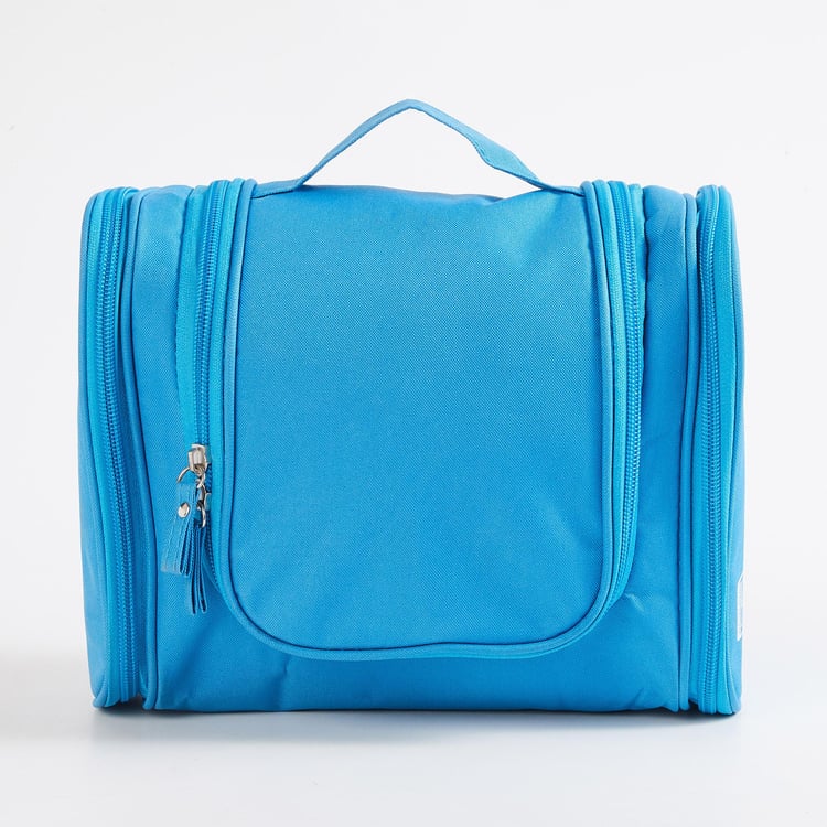 Defined by a solid detail, this toiletry bag features a zip closure that protects spacious compartments. The design is also enhanced by a top handle that allows you to carry the essentials with ease.
