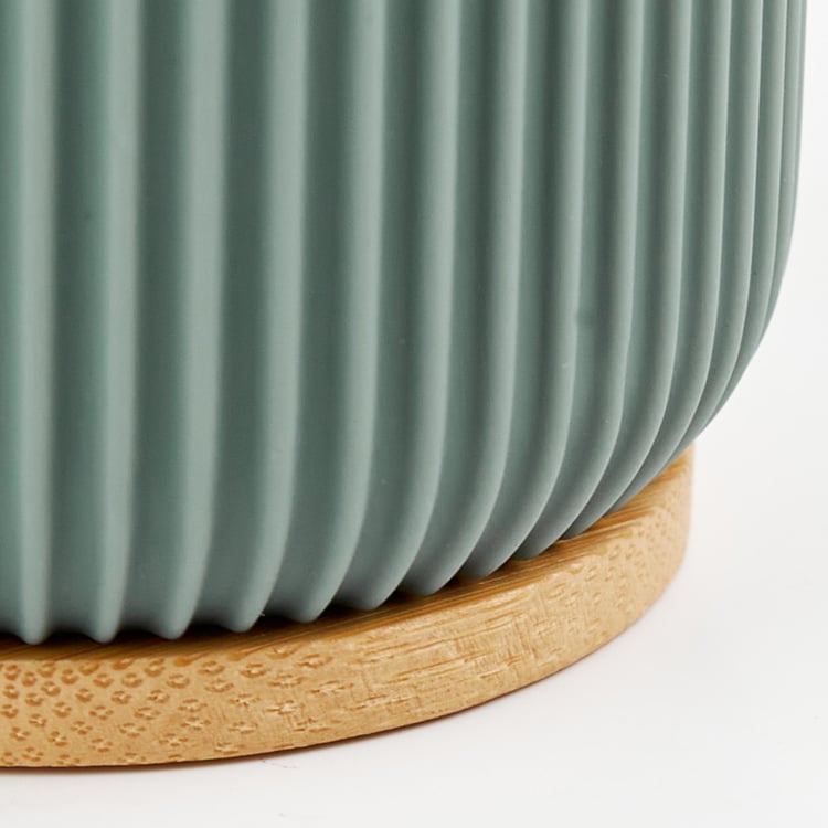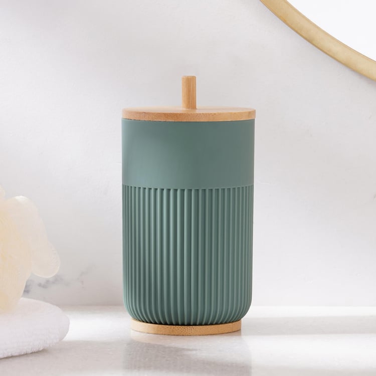 Add a vibrant touch to your bathroom storage with this elegant and unique product. Made with rubber and a bamboo lid, it is a classic example of utility with ease and protects the essentials from external conditions. You can easily store cotton swabs, ear buds, floss, etc.