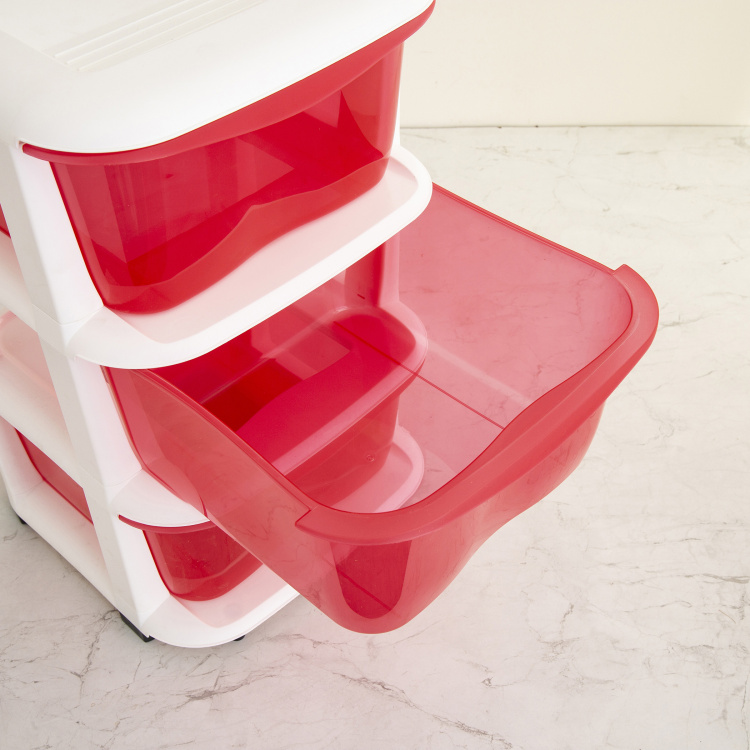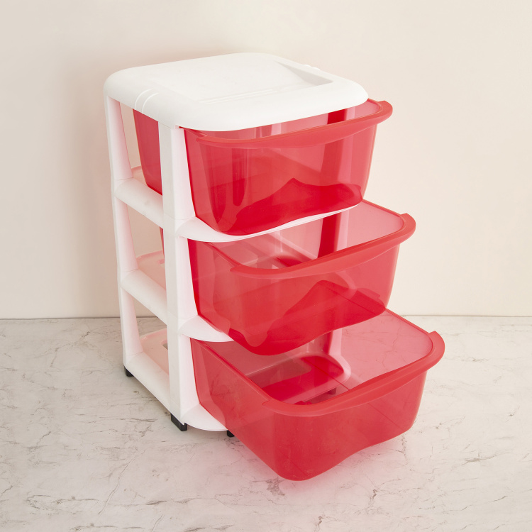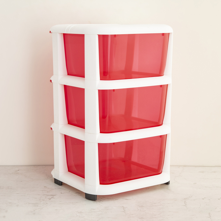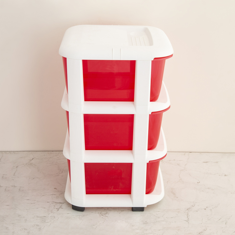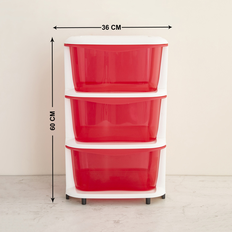 Regan Solid rectangle Single Pc. Three Tier Drawer Cabinet - 36 cm x 60 cm - Polypropylene - Red