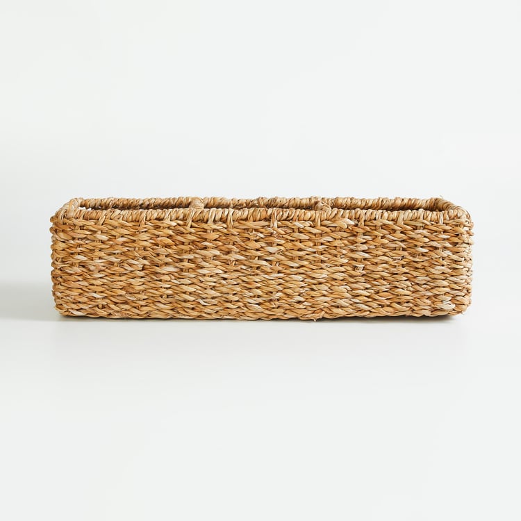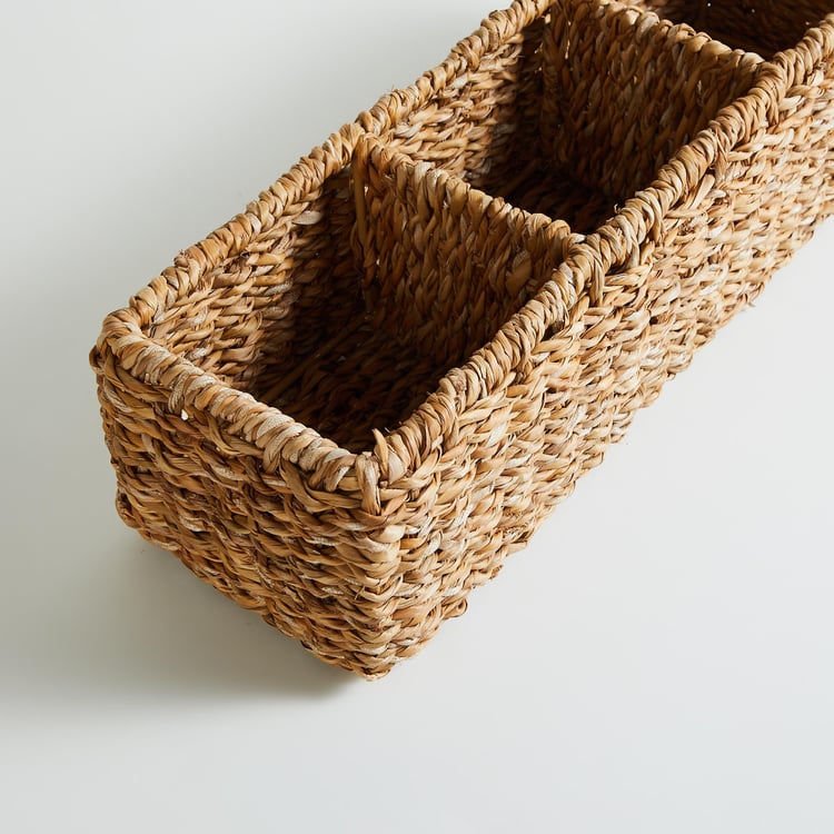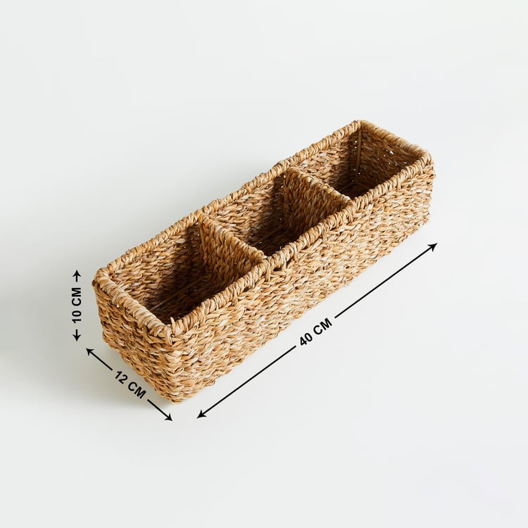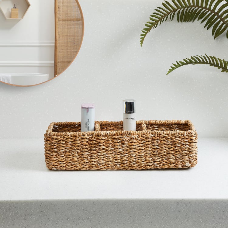 Elevate the look of your bath space by organising your essentials in this box. It boasts an iron frame with a handcrafted seagrass finish for a natural look. The box features 3 compartments for easy organisation. This eco-friendly design can fit into any space in your home.
