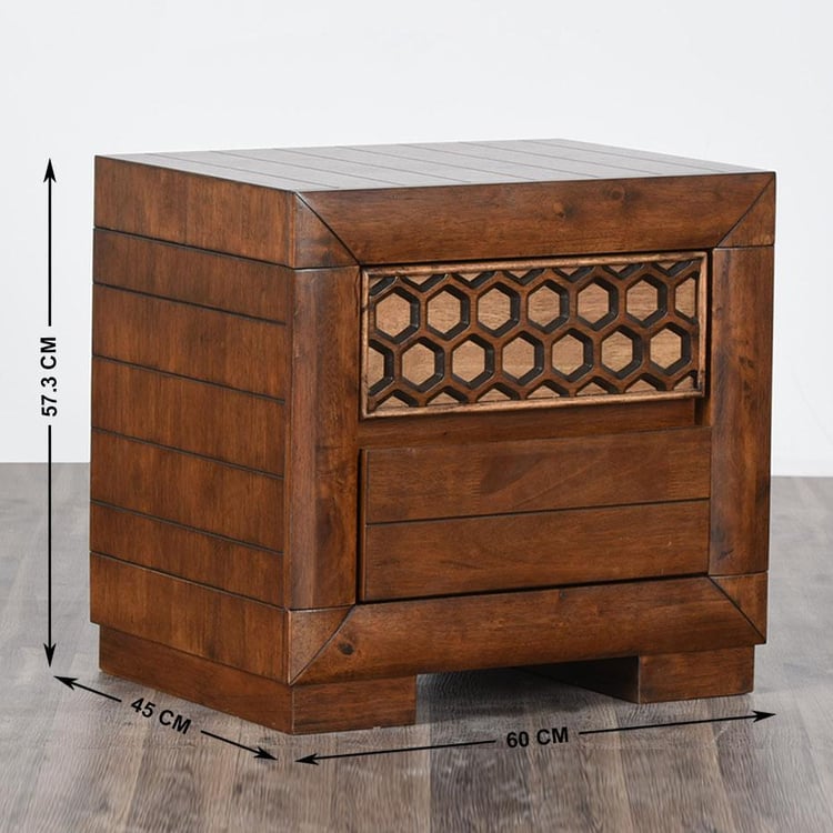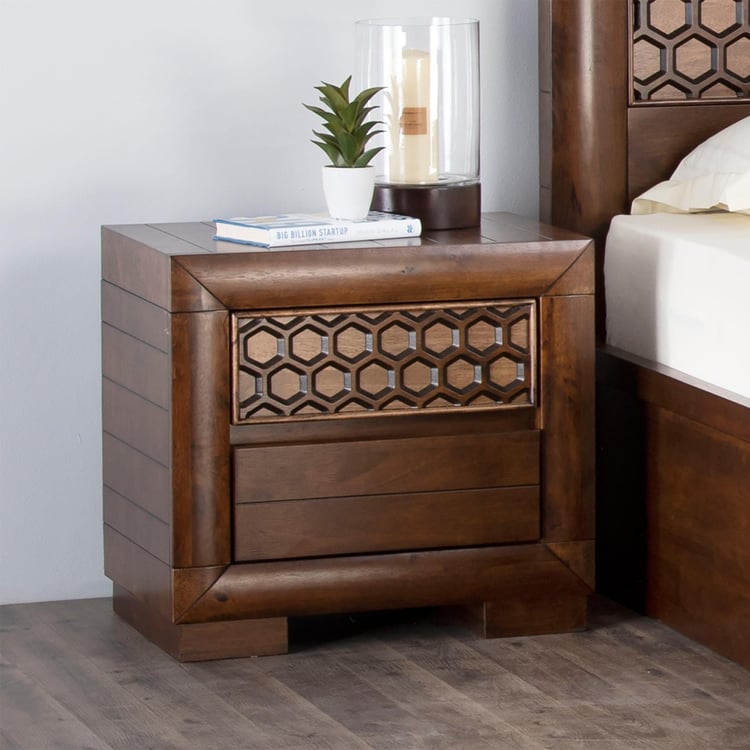 - This classic nightstand features a honeycomb pattern that elevates the over-all appeal and makes for a classy addition to your bedroom.