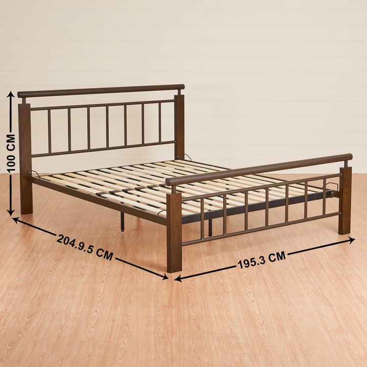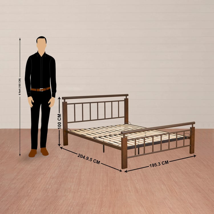 Alex King Size Metal Bed - 180 x 195 cm - Brown