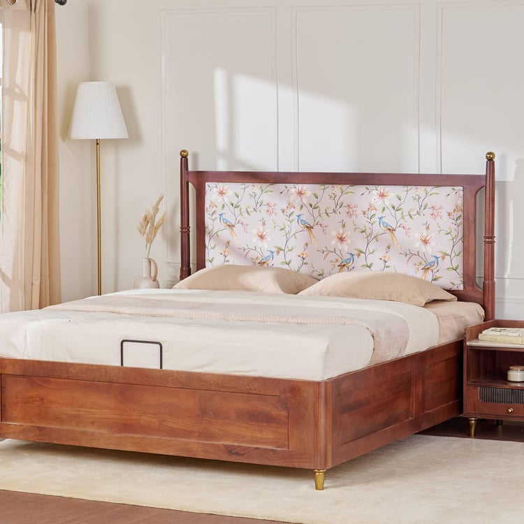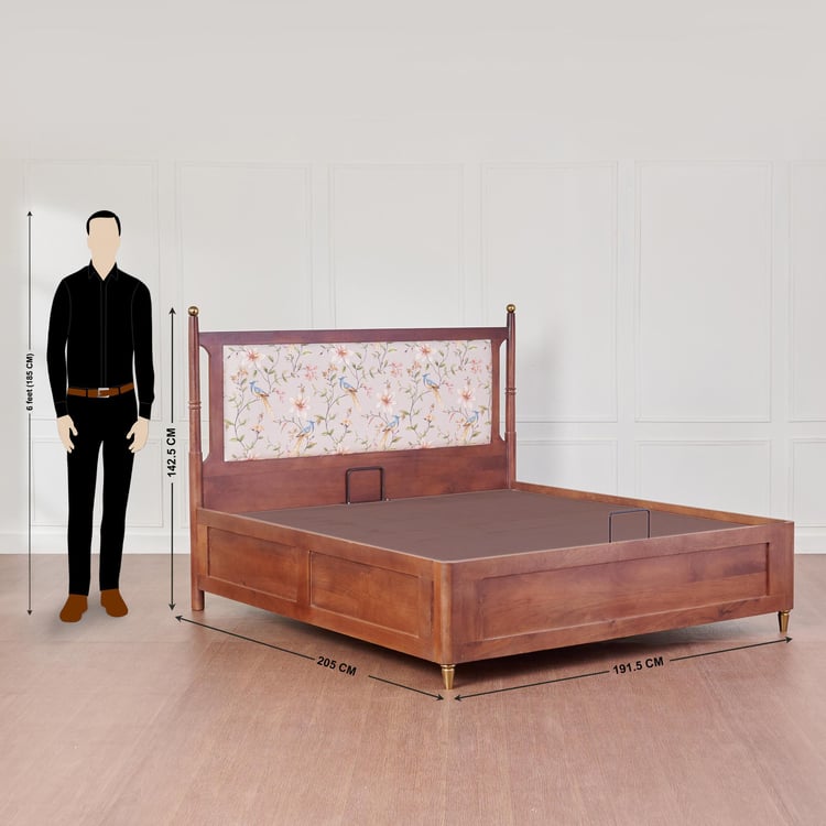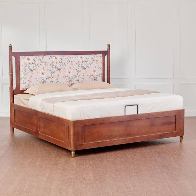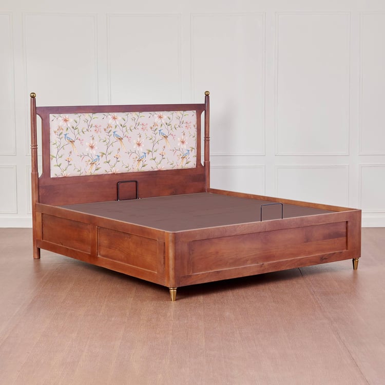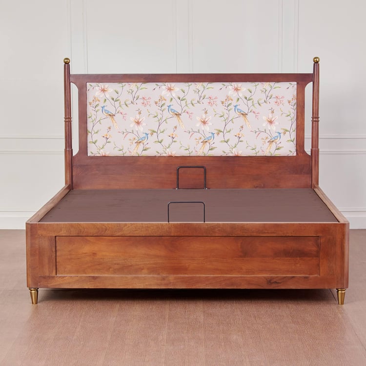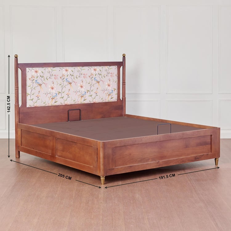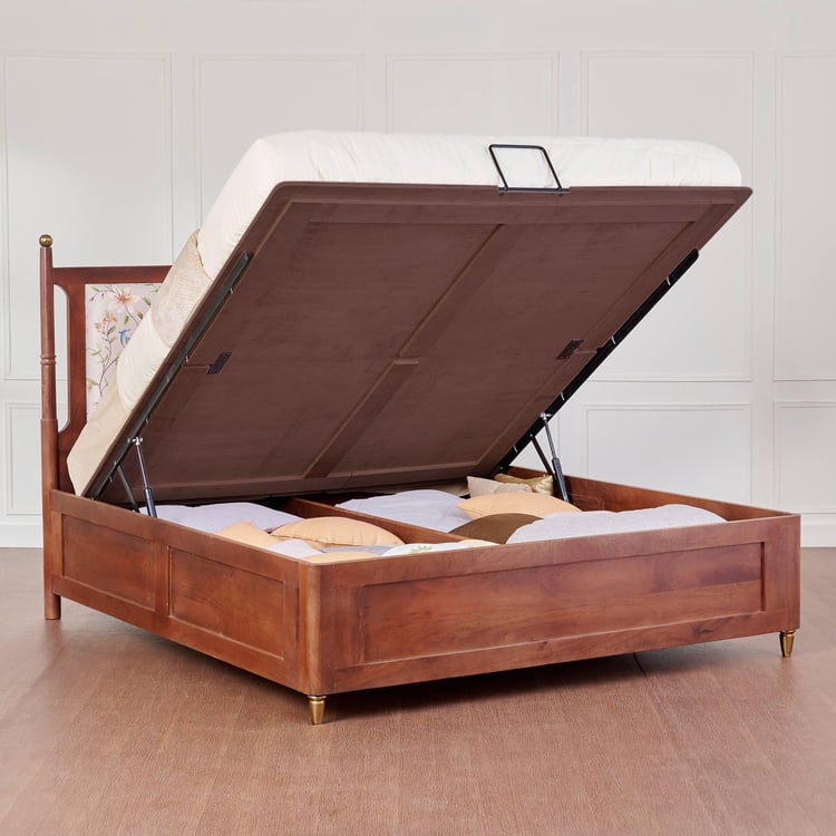 Dastkari Maharaja Mango Wood King Bed with Hydraulic Storage - Brown