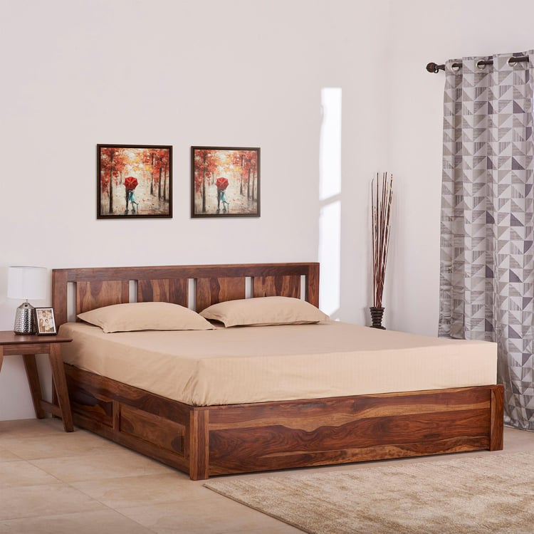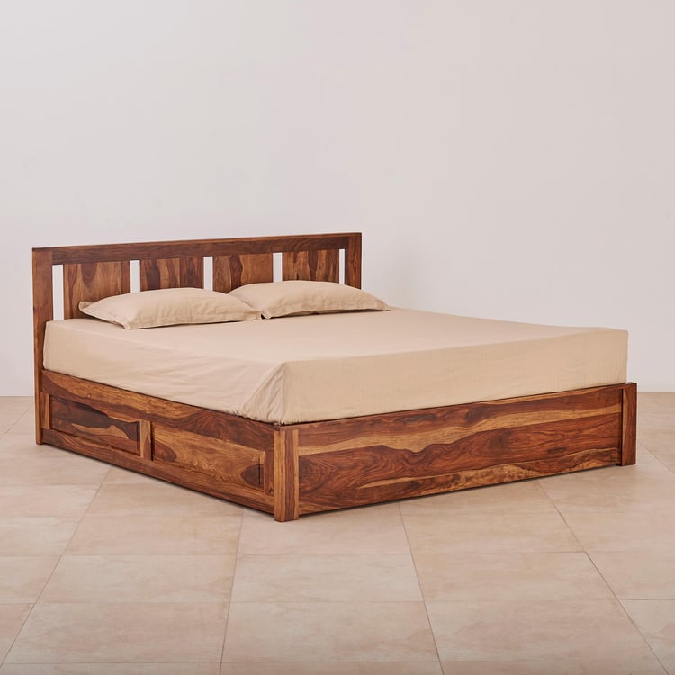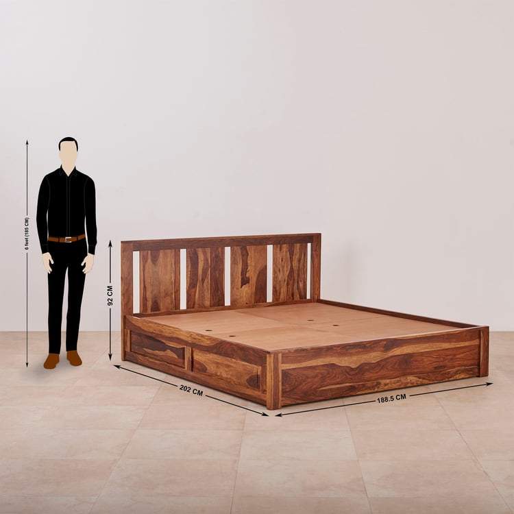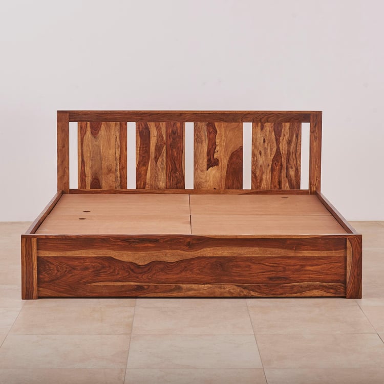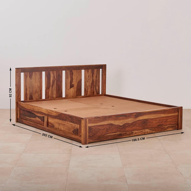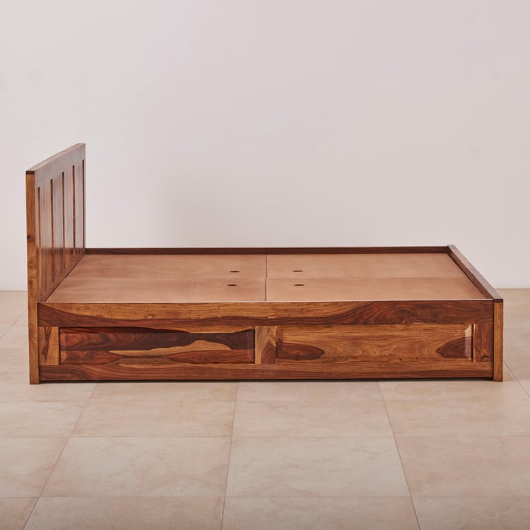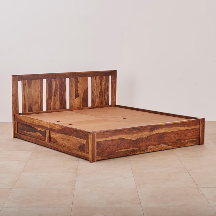Helios Swastik Sheesham Wood King Bed with Box Storage - Brown