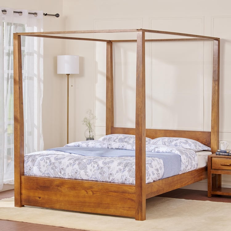 Adana Mango Wood Queen Poster Bed - Brown