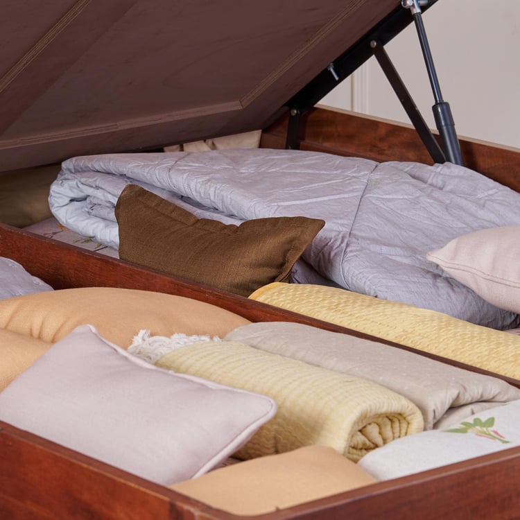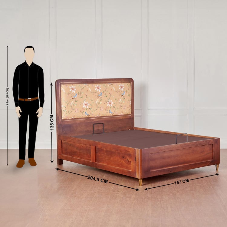Dastkari Samrat Mango Wood Queen Bed with Hydraulic Storage - Brown