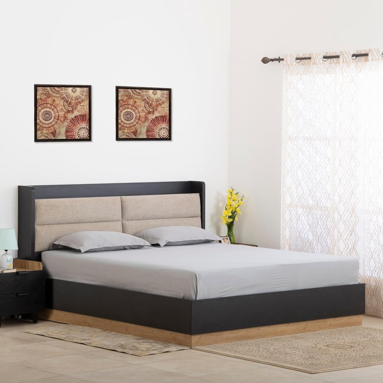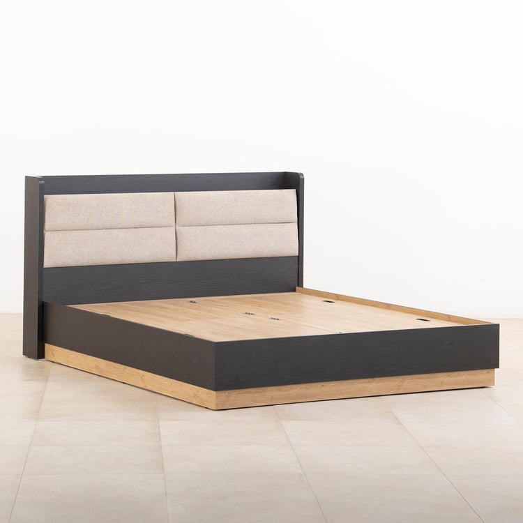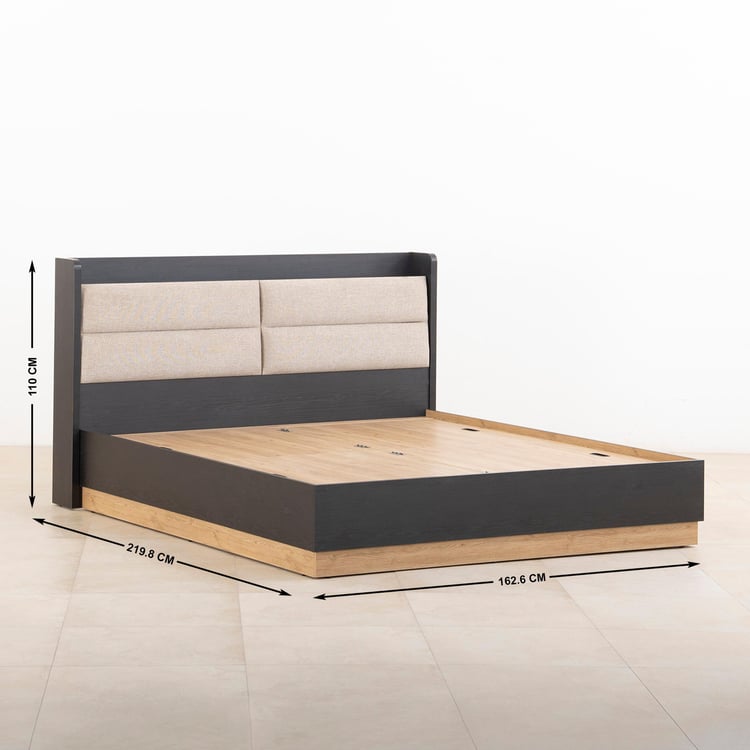 Kiro Titan Queen Bed with Box Storage - Black and Light Brown