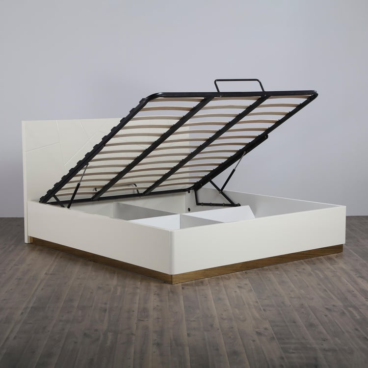 Crafted from premium quality wood, this queen-size bed has been designed to serve as the perfect pick for your bedroom. It is equipped with handy features to amp up your space.