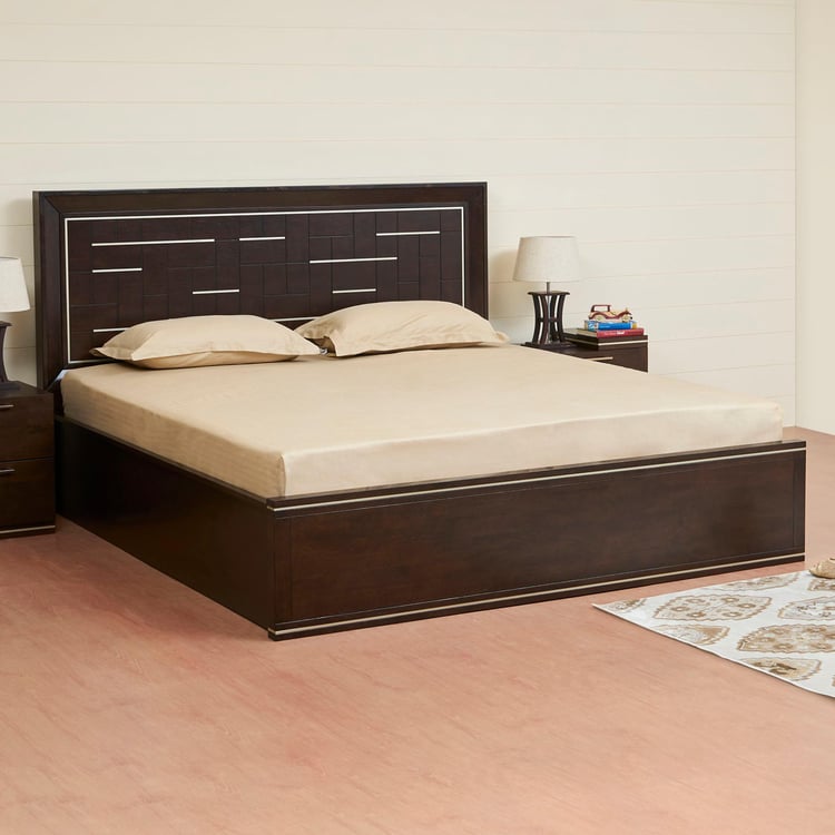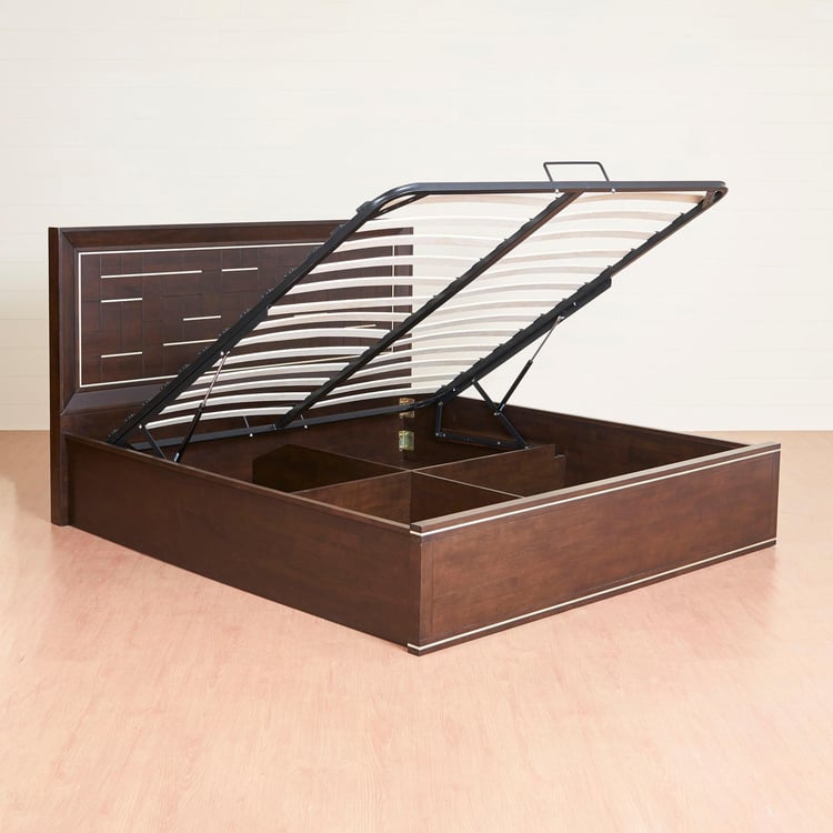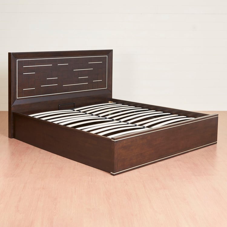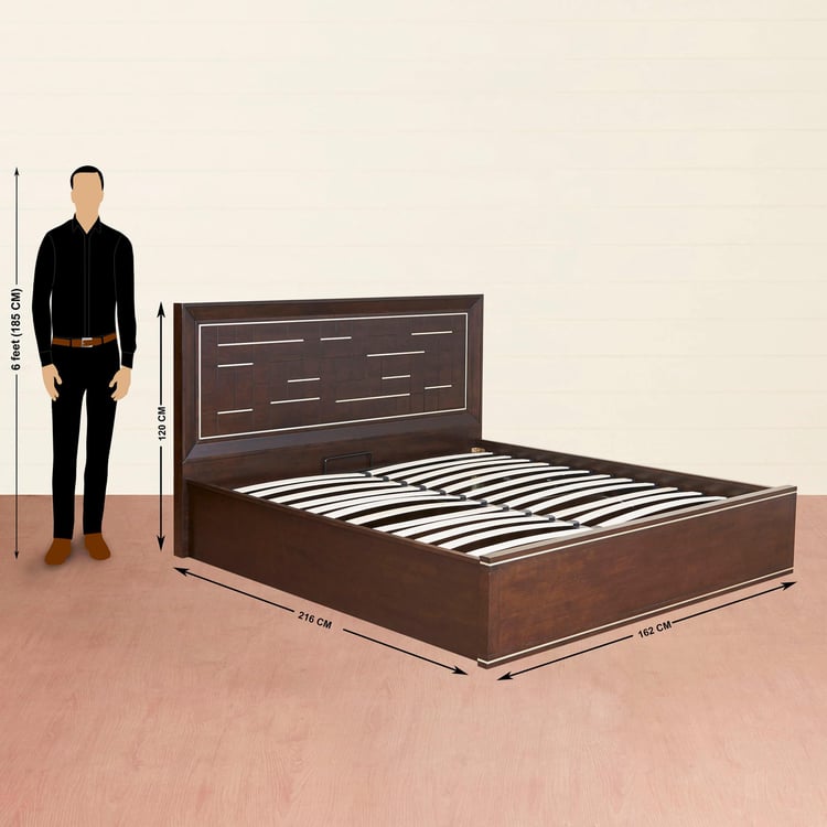 Valencia Elvis Queen Size Bed With Hydraulic Box Storage - 150 x 195 cm - Brown