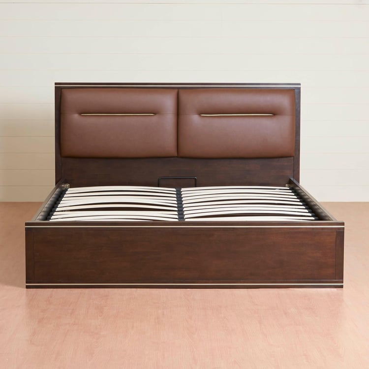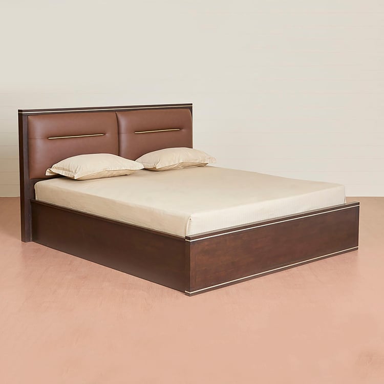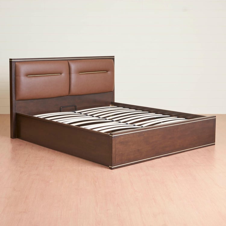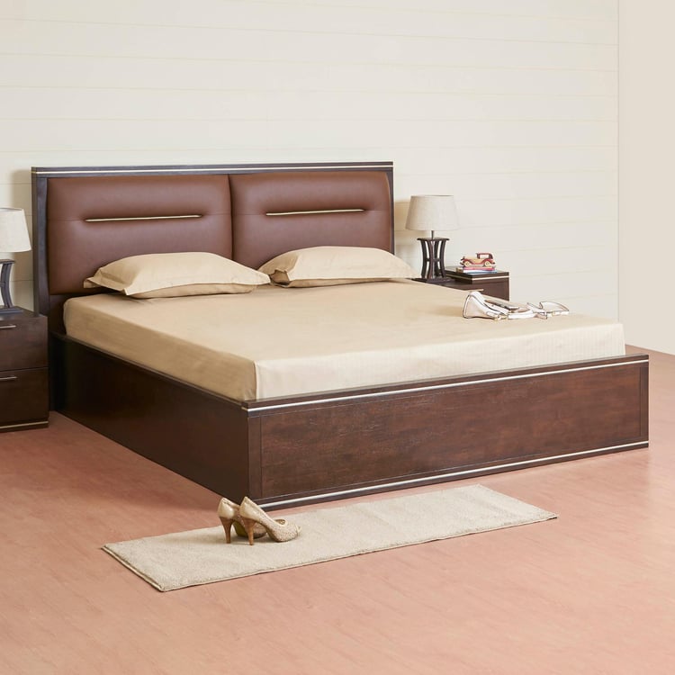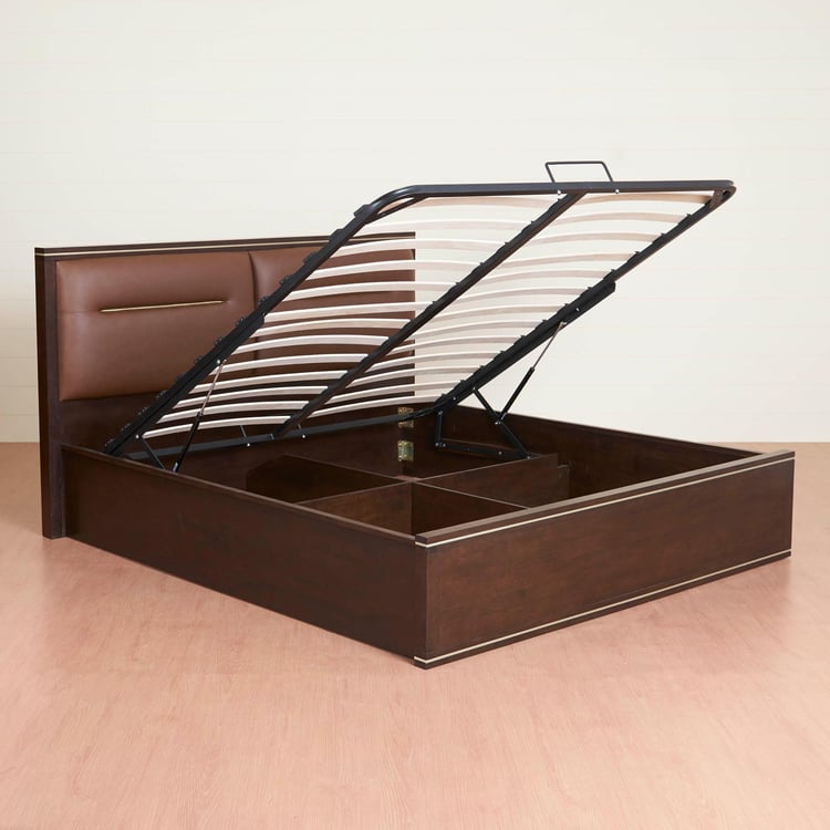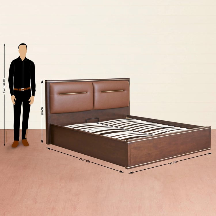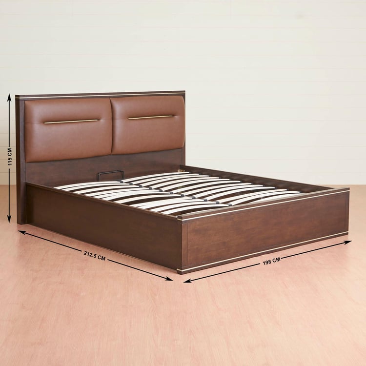 Valencia Queen Size Bed With Hydraulic Box Storage - 150 x 195 cm - Brown
