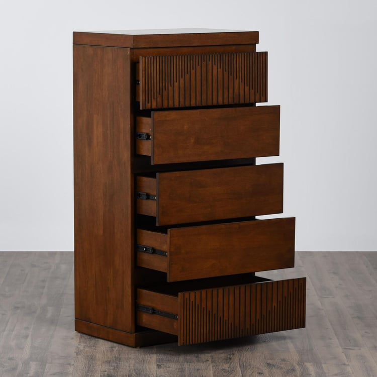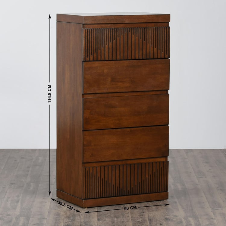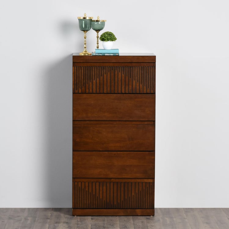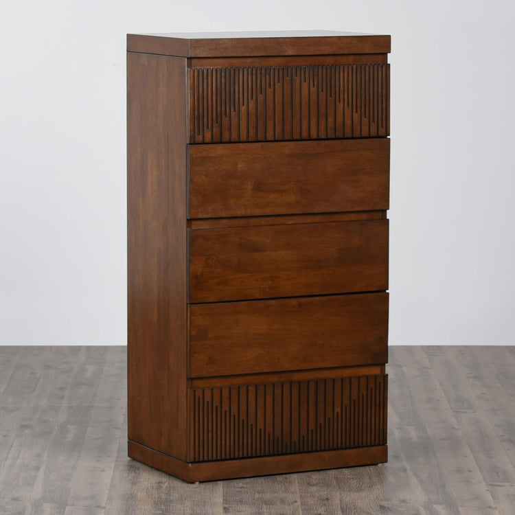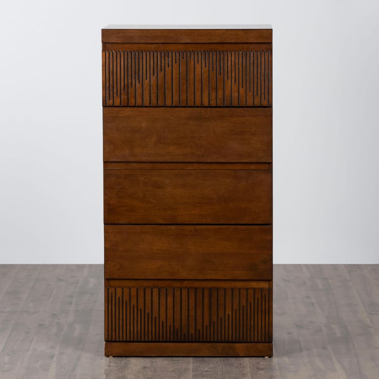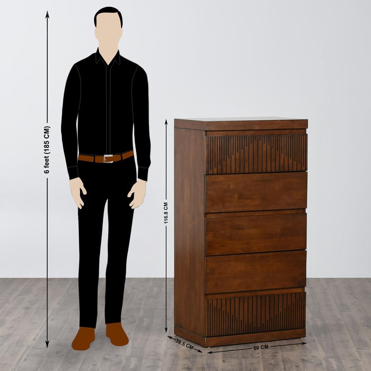 Keep your clothes and essentials organized with the help of this classic chest of drawers that has been crafted from solid engineered wood. It contains five spacious drawers that allow effortless organization.