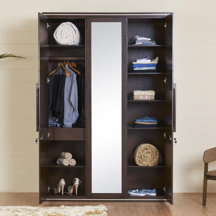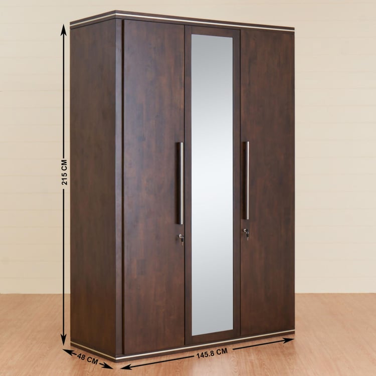 Valencia Three Door Hinged Wardrobe - 145X65 cms - Brown