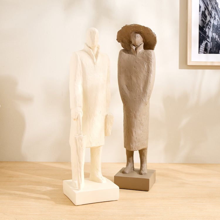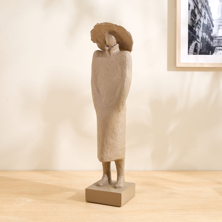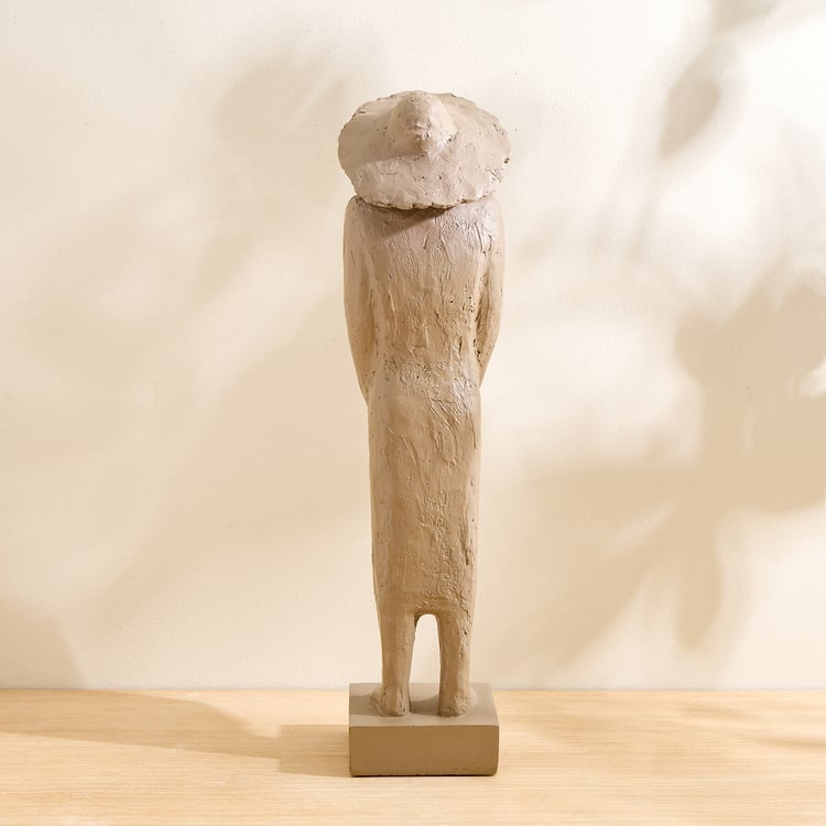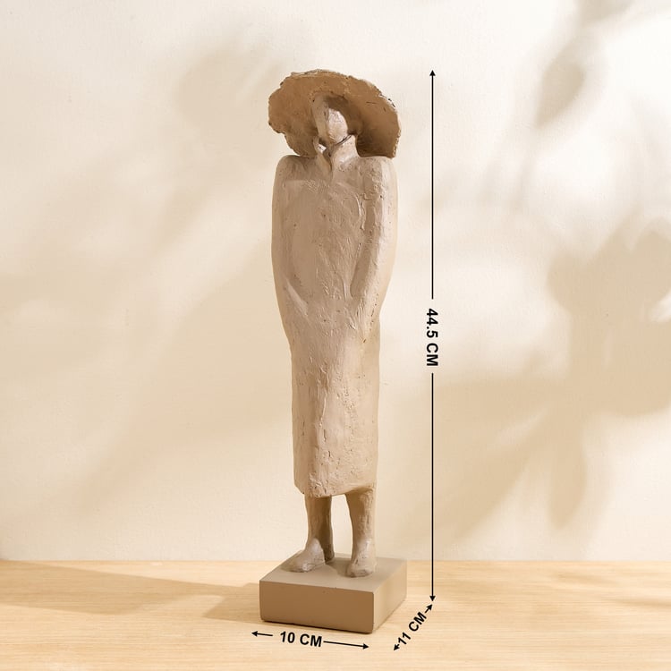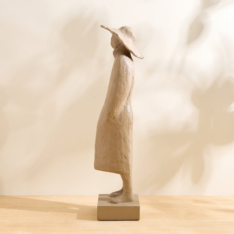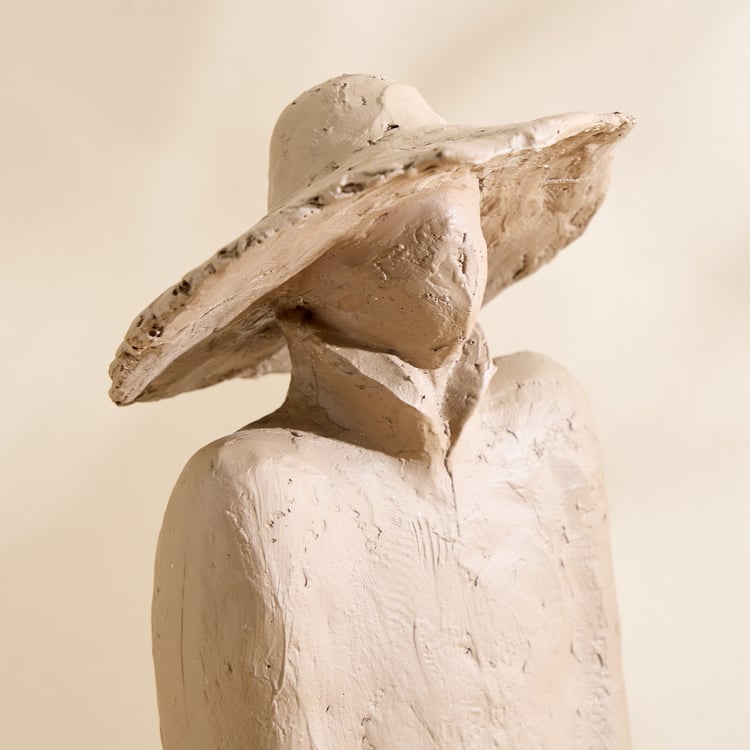 Grain Buff Polyresin Woman with Hat Figurine