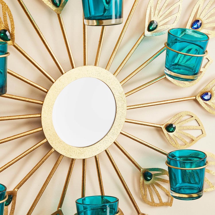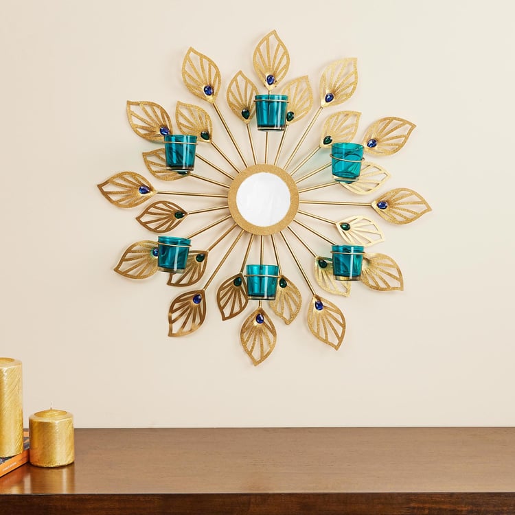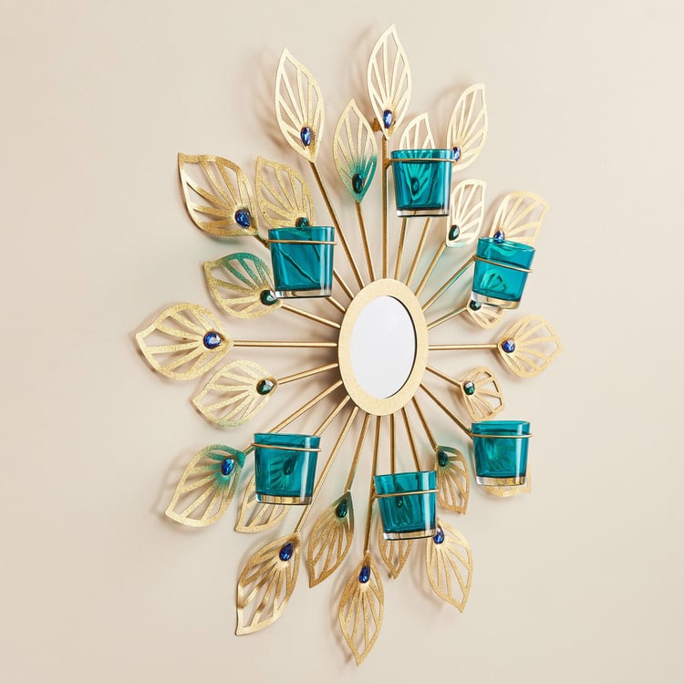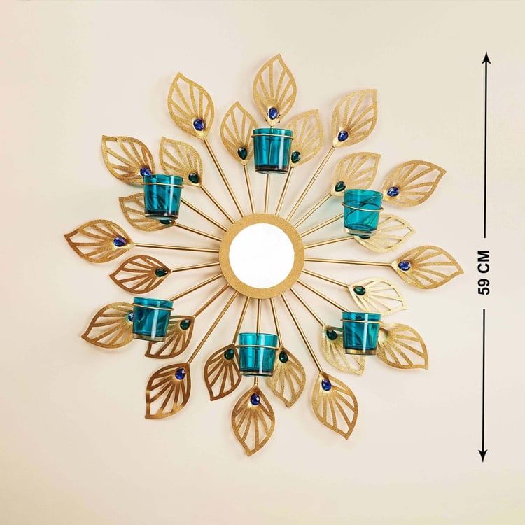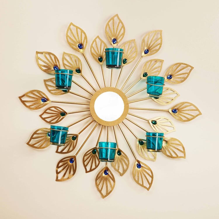 Mayur Zahi Leaf-Shaped Wall Handing Glass Votive Holder - 59 cm