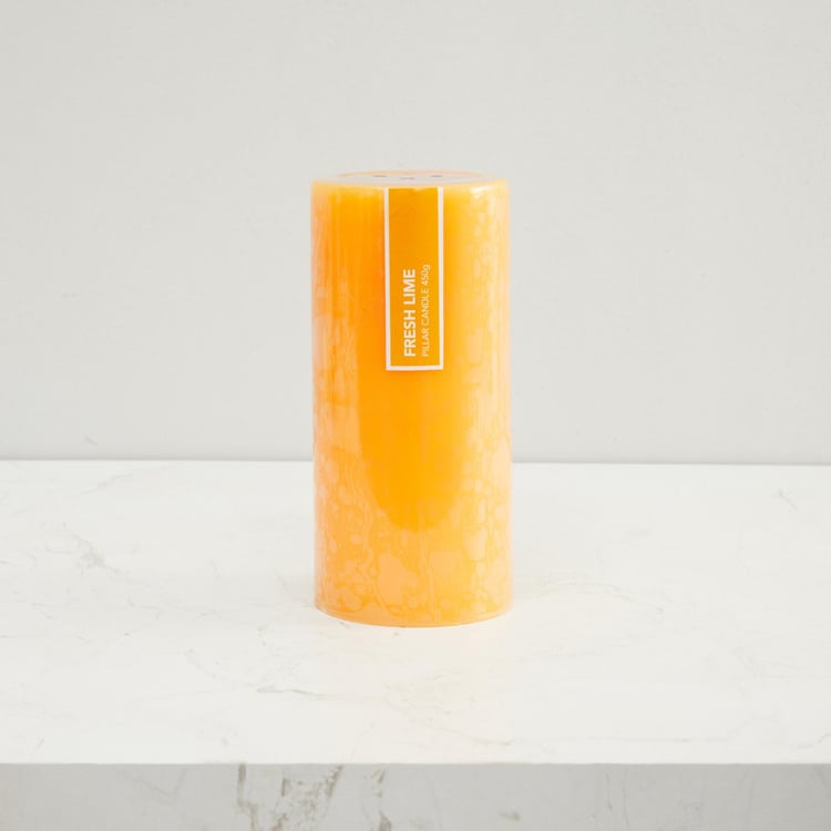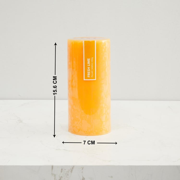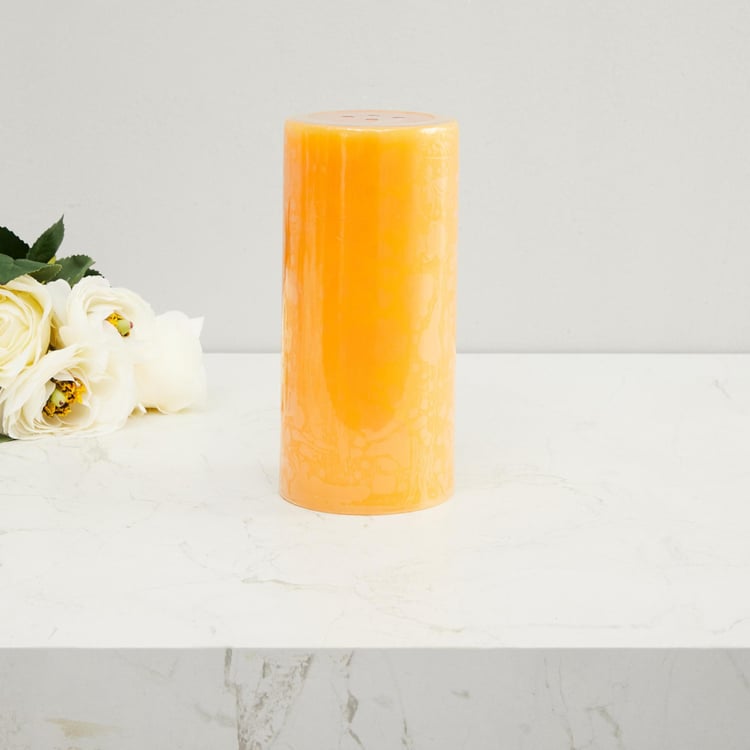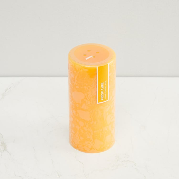 Lightening up the glow of your personal space with its ultra-modish design, this pillar candle spreads a fruity fragrance and lasts longer than usual scented candles.
