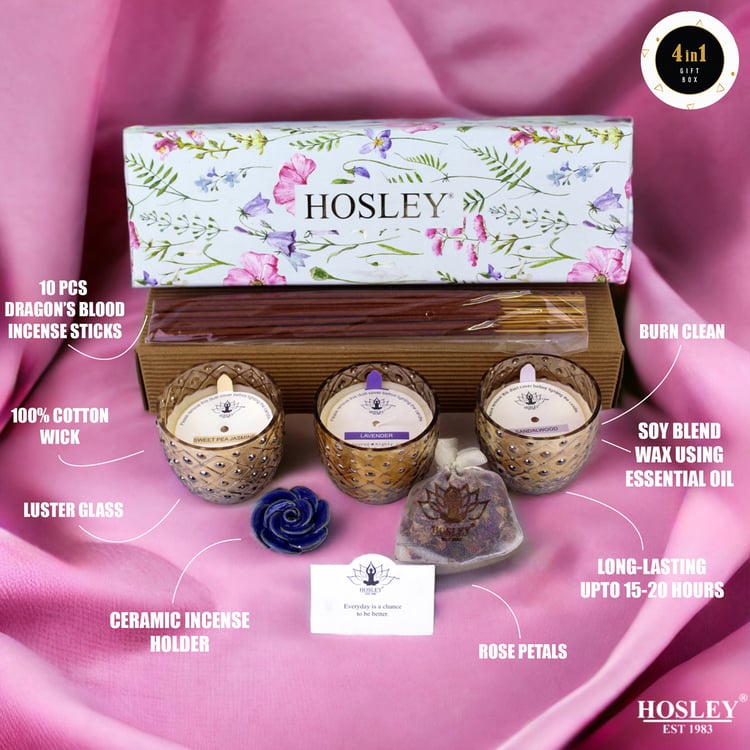3 Jar Candles, 1 Incense Holder, 10 Incense Sticks, Rose Petals