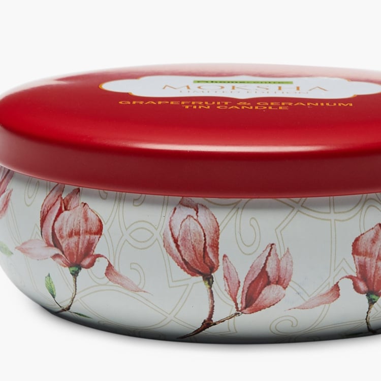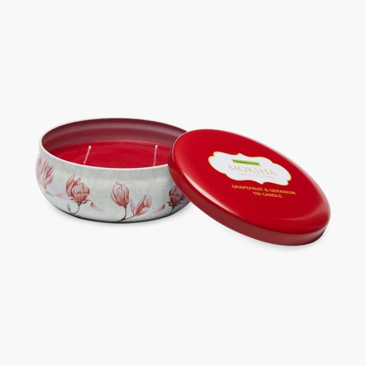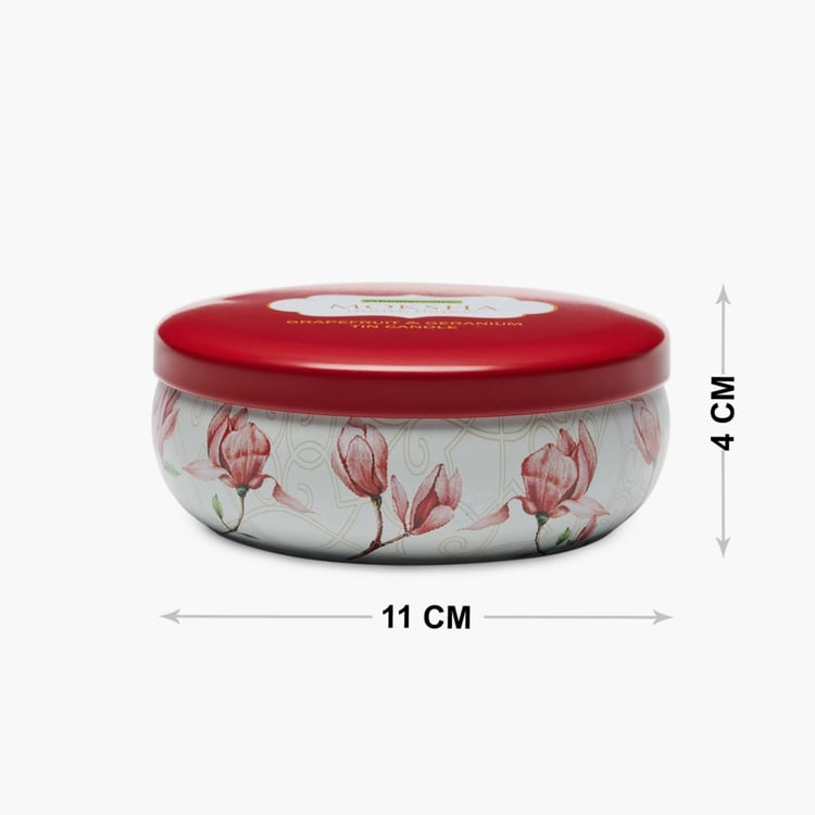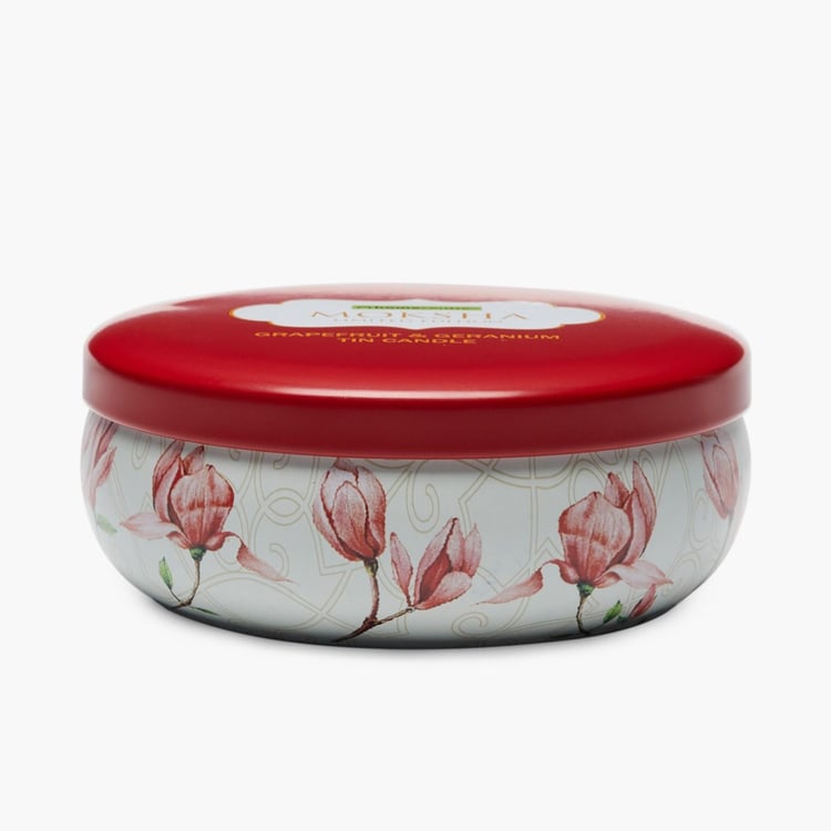 Lighten up your living space with some fruity aroma with this printed tin candle.
