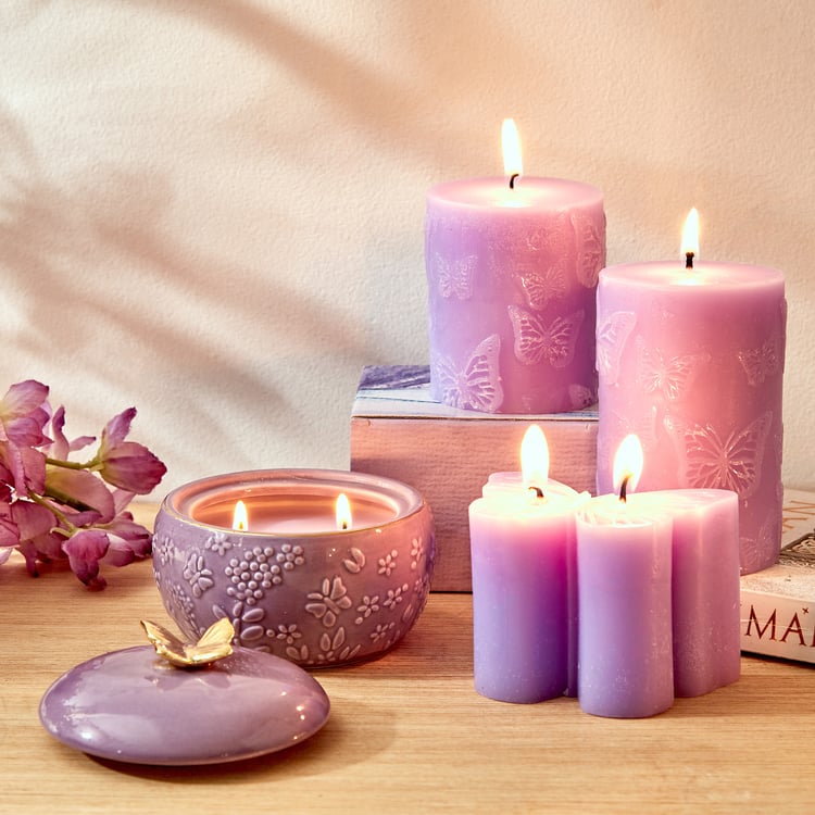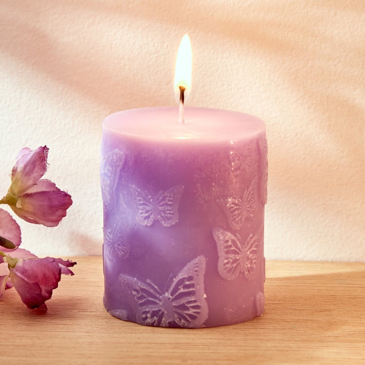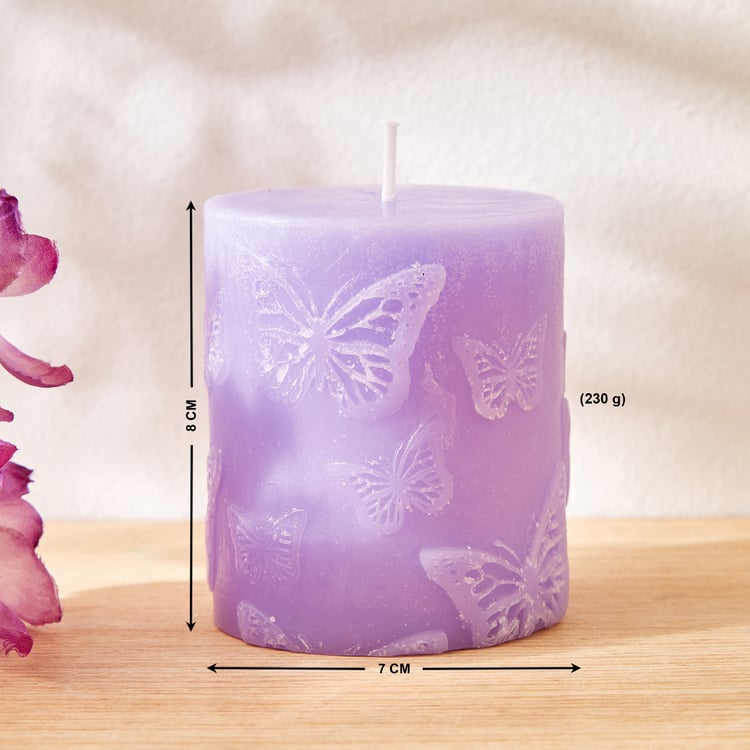 This pillar candle exudes a delicate, floral fragrance reminiscent of blooming lavenders. Its elegant butterfly design adds a decorative touch, while the long-lasting wax ensures a consistent, inviting aroma throughout your space. Perfect for adding a romantic and sophisticated touch to any room, this candle enhances the atmosphere with its soft, lavender scent.