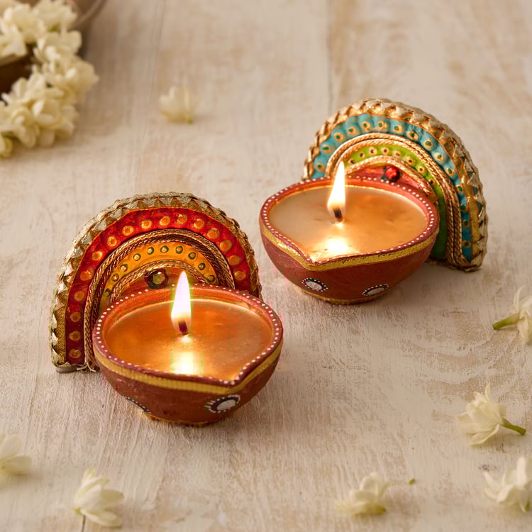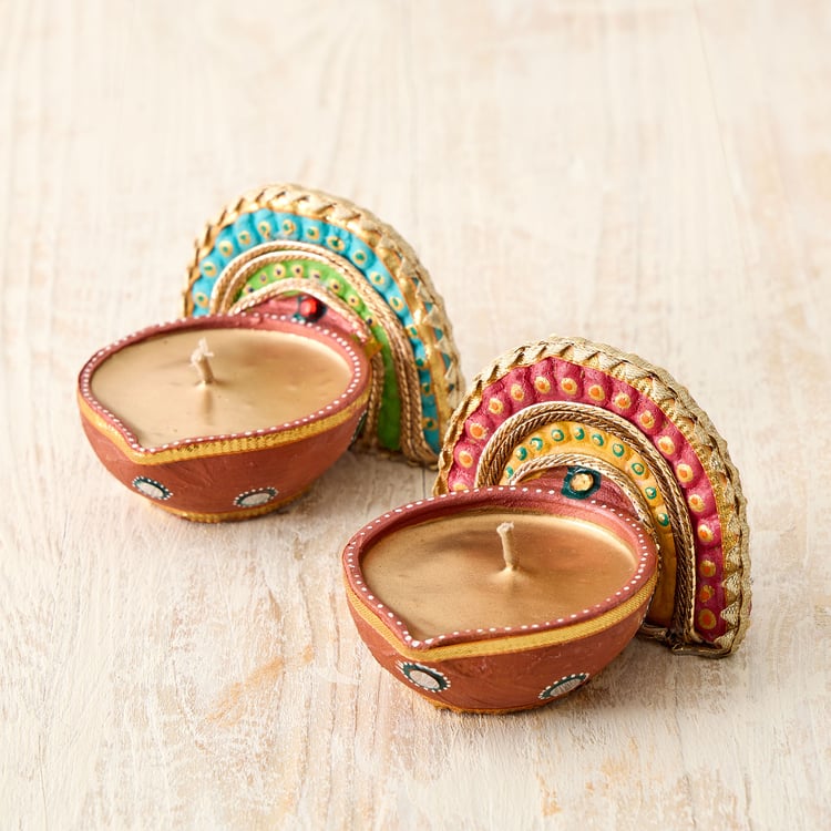 Utsav Set of 2 Clay Embellished Ram Diyas