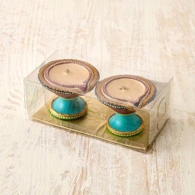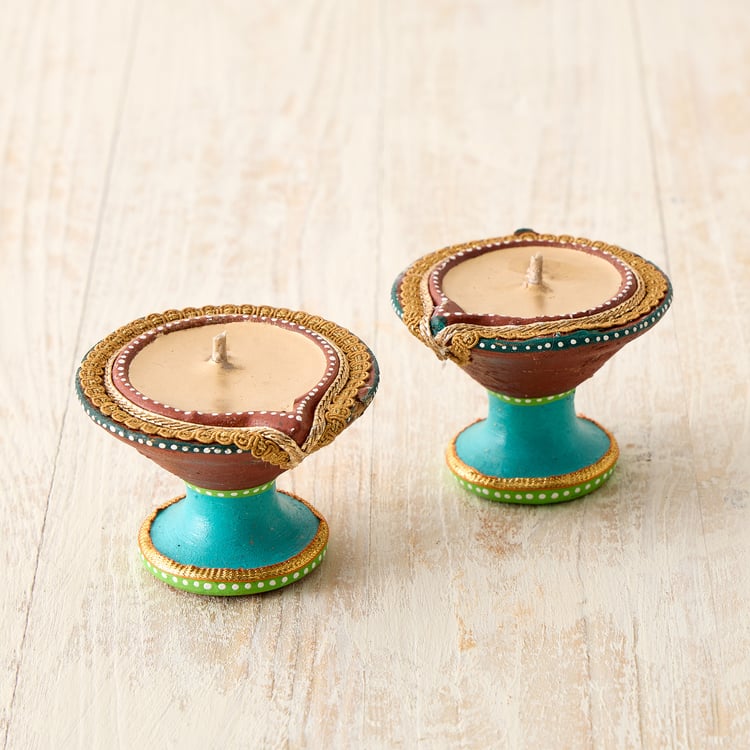 Utsav Set of 2 Clay Embellished Standing Diyas
