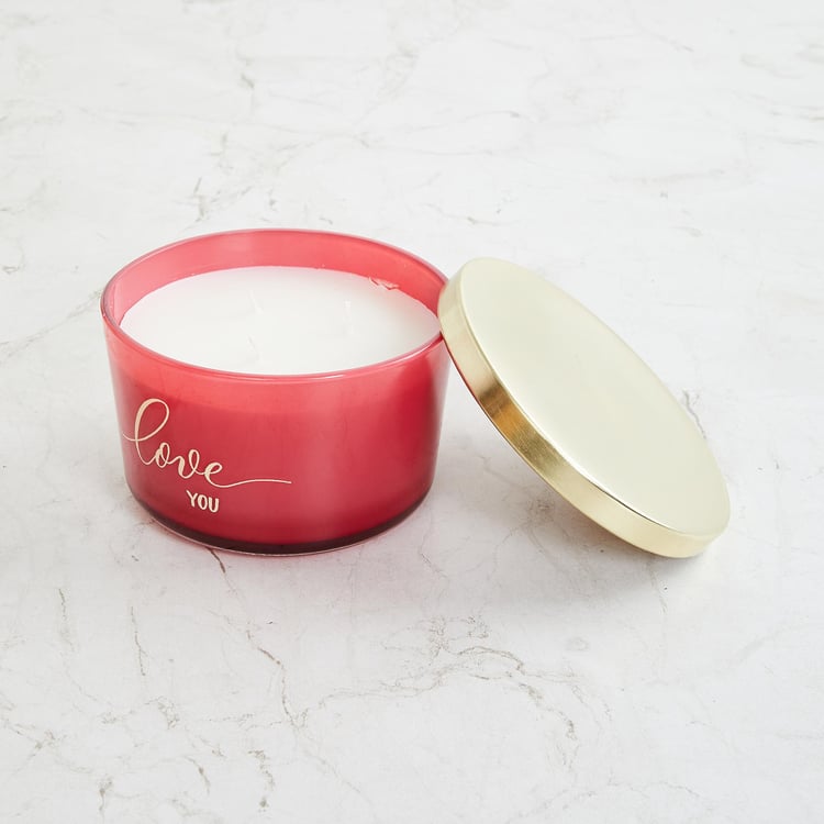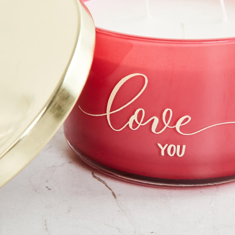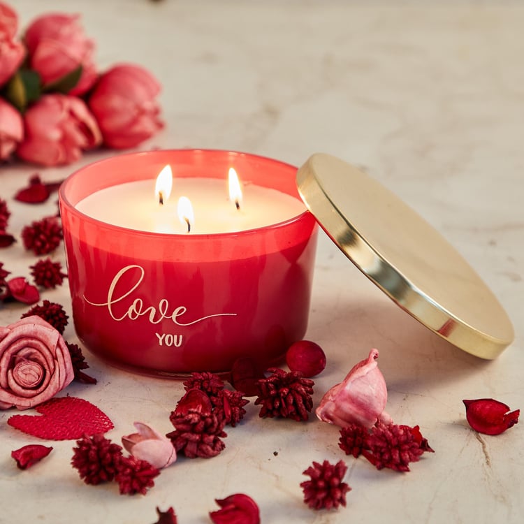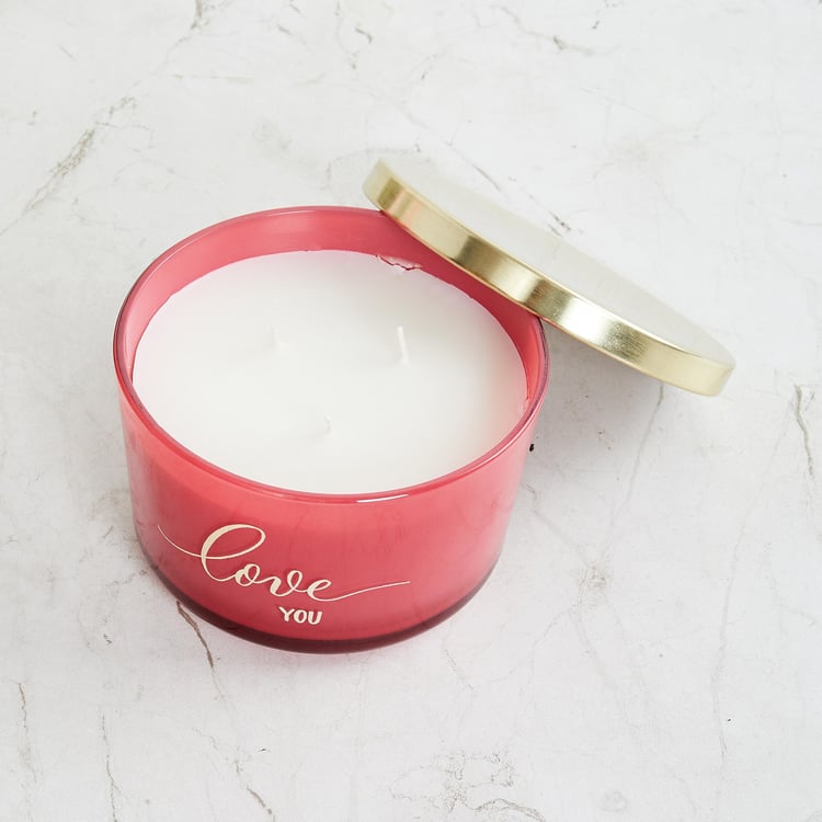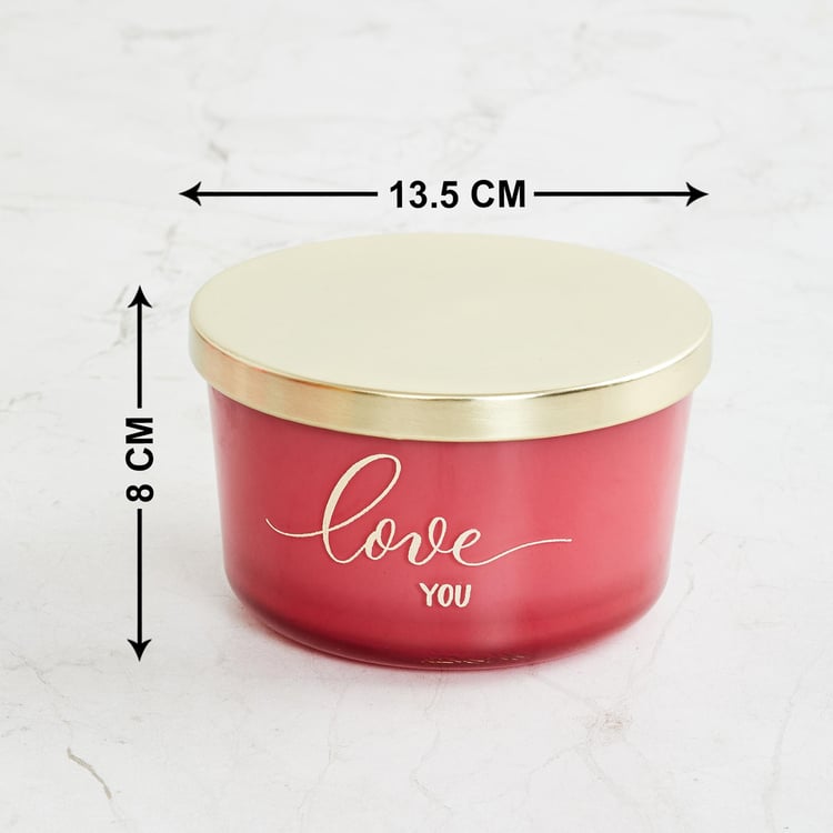 Valentine Red Triple Wick Scented Decal Glass Candle With Metal Lid