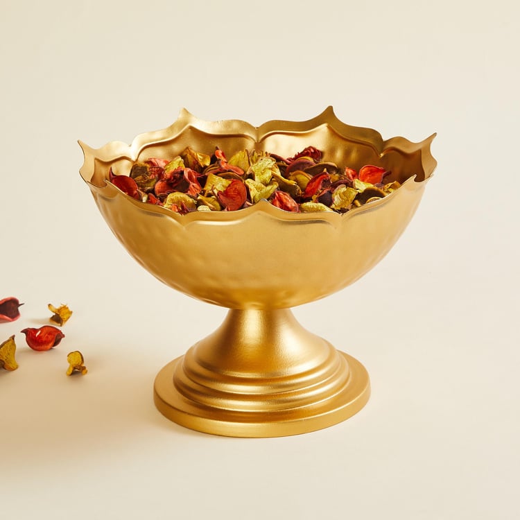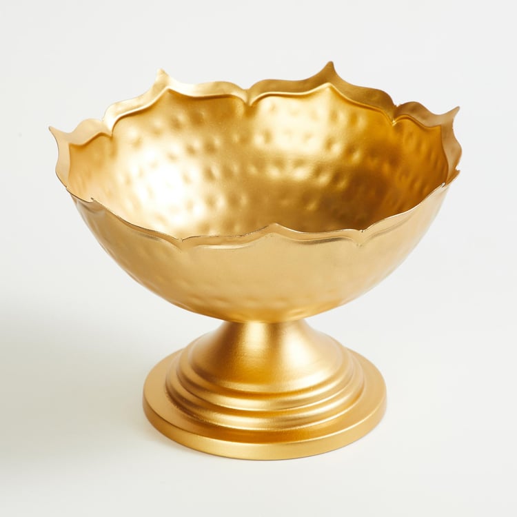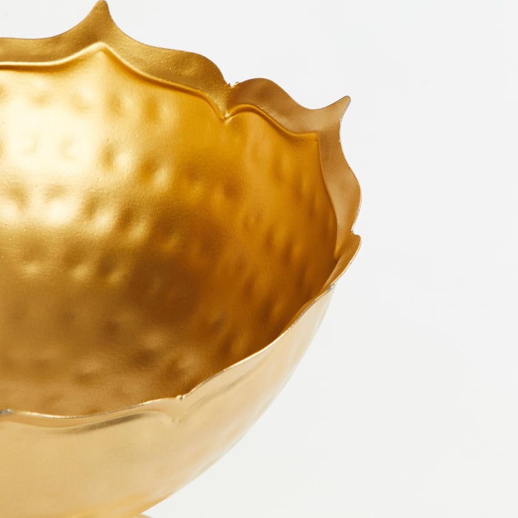 Adorned by a textured design and a gold-tone finish, this round bowl is a great addition to your living room decor for a refreshing appeal. Place this alongside your sofa and enhance the overall interior of your homefront.