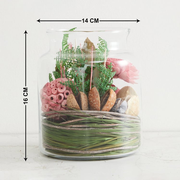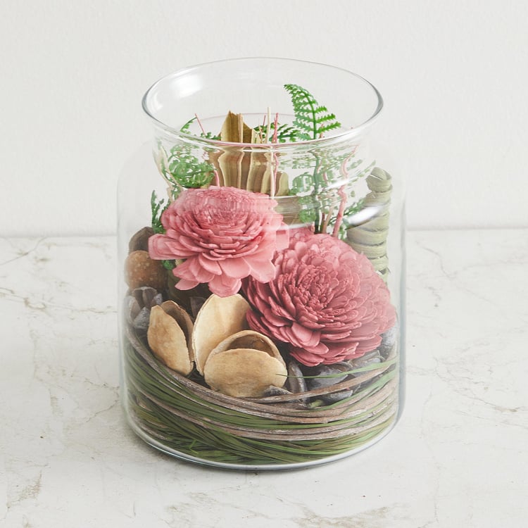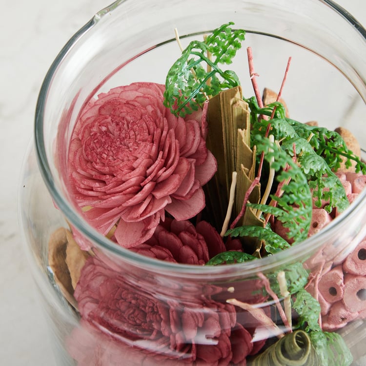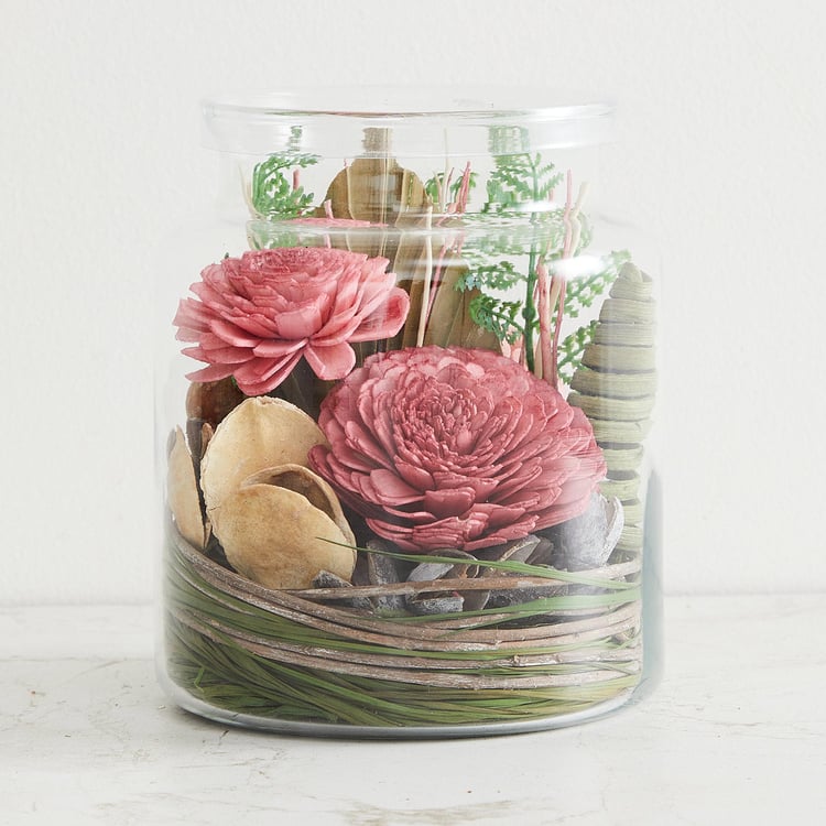 Bring the beauty of nature to your home with this scented flower arrangement, that has been placed in a glass jar, to spread a soothing waft all around and add to the beautiful decor of your home.