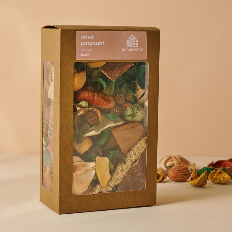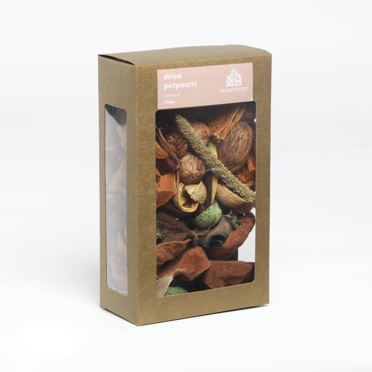 Create an inviting ambience in your home with this potpourri. It includes dried leaves and flowers with a cedar wood fragrance that wafts around your space to create a calm, serene feel.