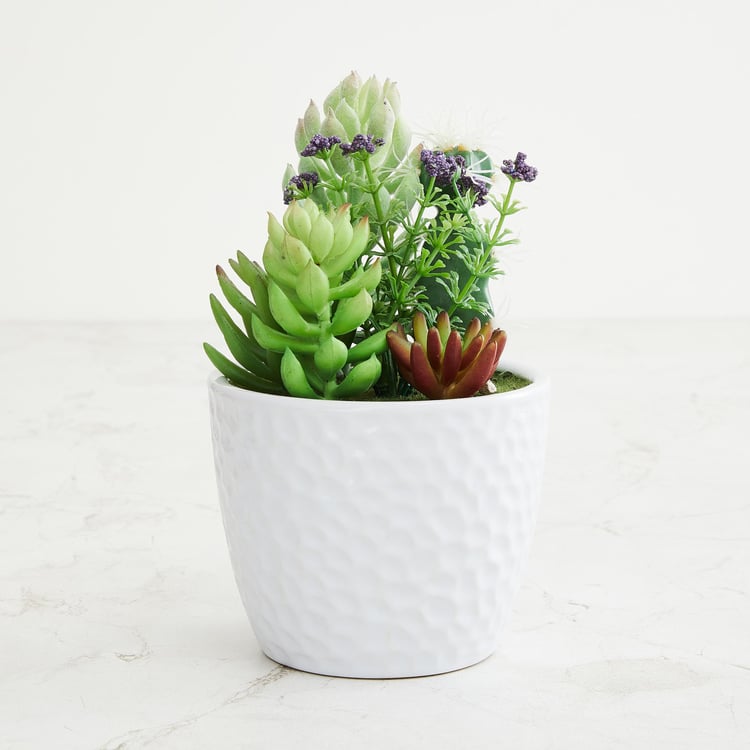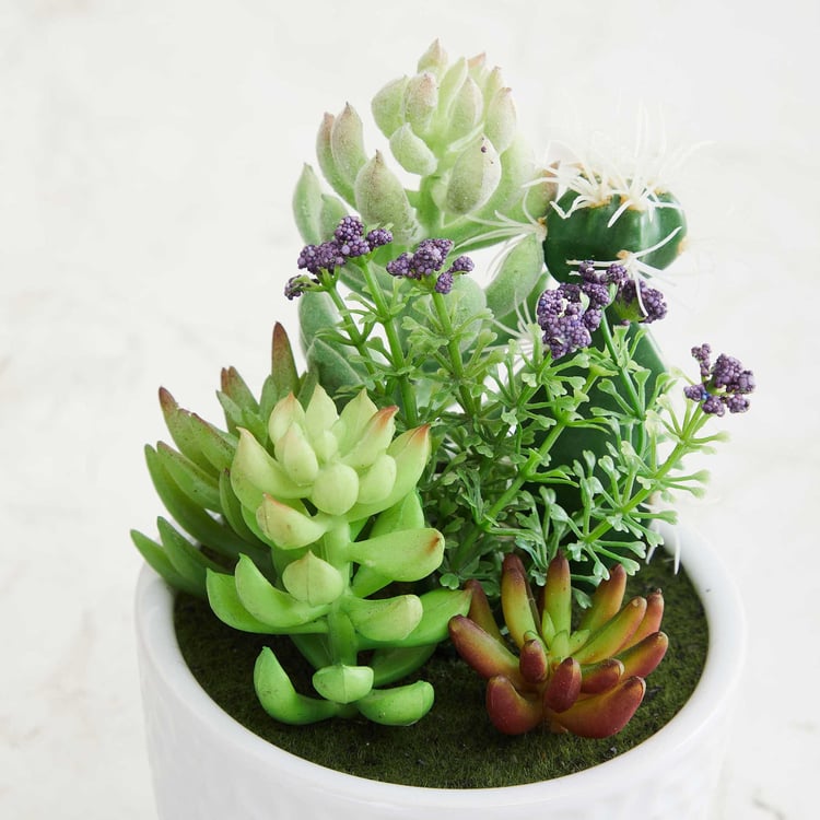 Plants instantly brighten up the ambience of your living space with their colours and vibrancy. Refresh the interiors of your home or office with this vibrant artificial succulents in pot for a nature-inspired look.