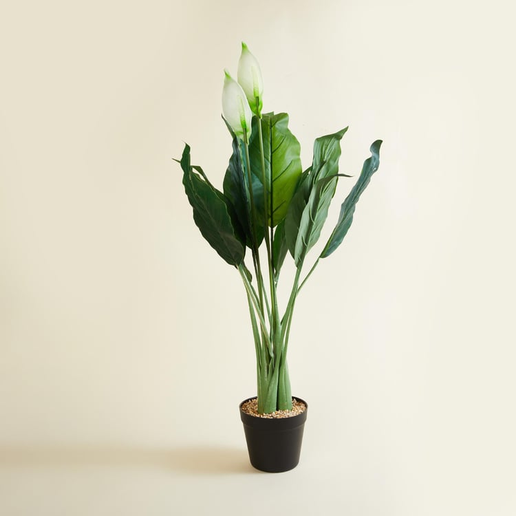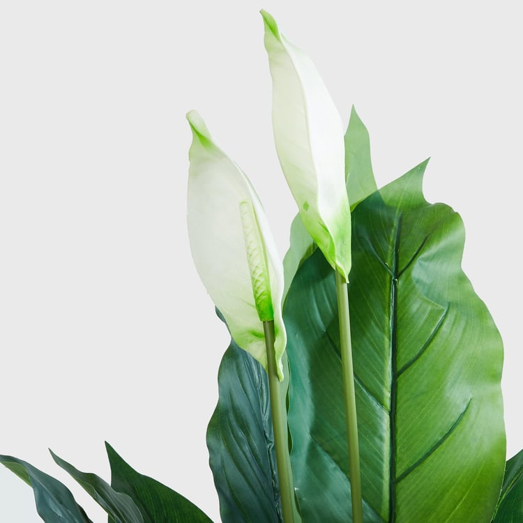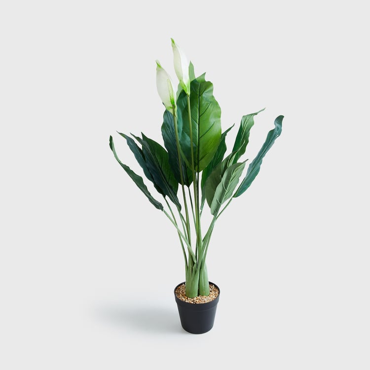 Plants instantly brighten up the ambiance of your living space with their colors and vibrancy. Refresh the interiors of your home or office with this vibrant artificial peace lily plant in a pot for a nature-inspired look.