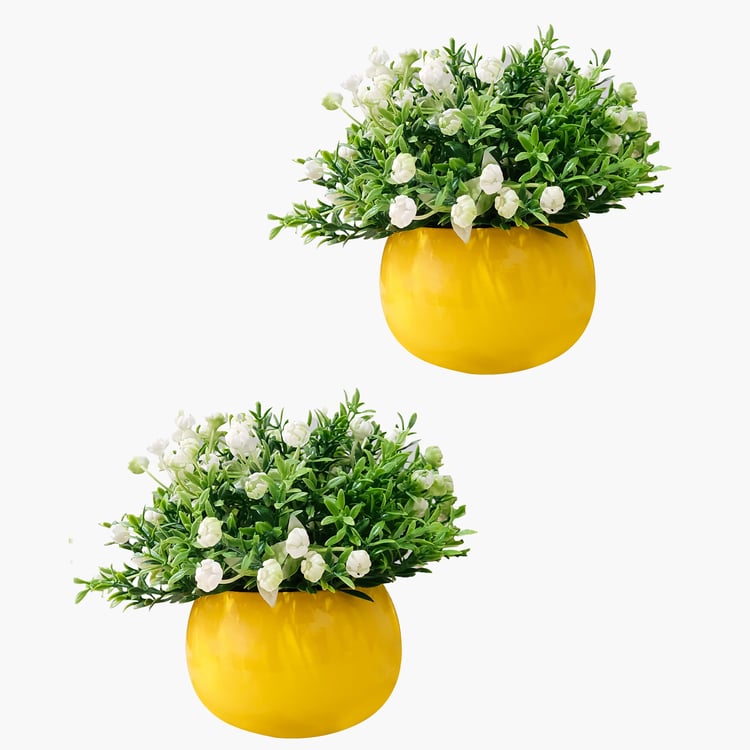 HOMESAKE Set of 2 Artificial Italian Rose Bunch with Metal Pots