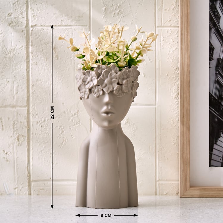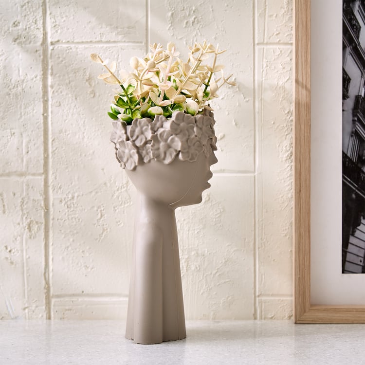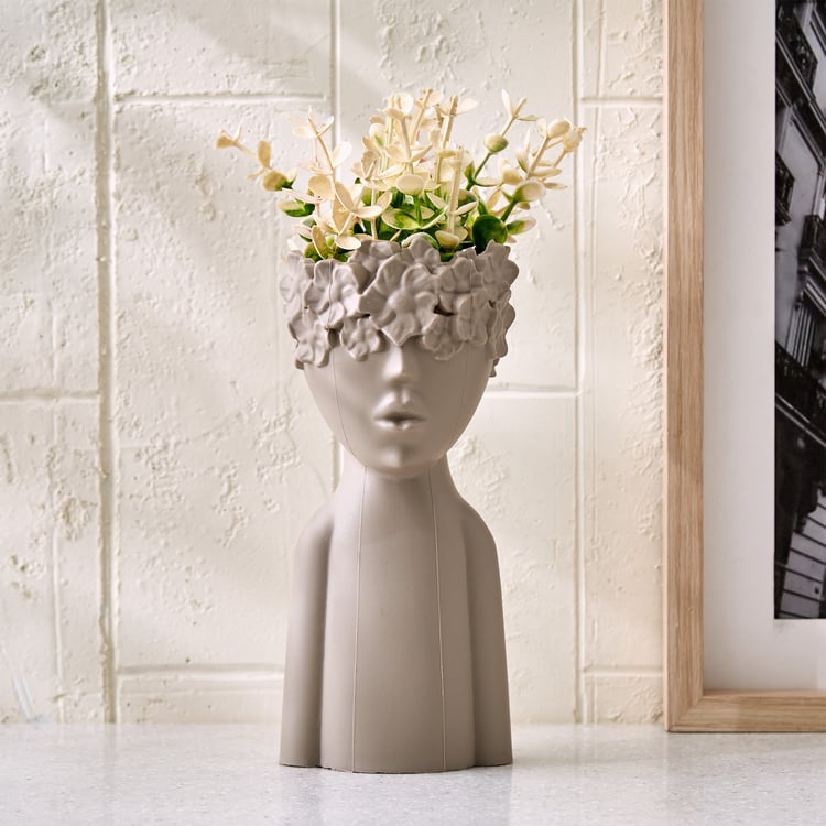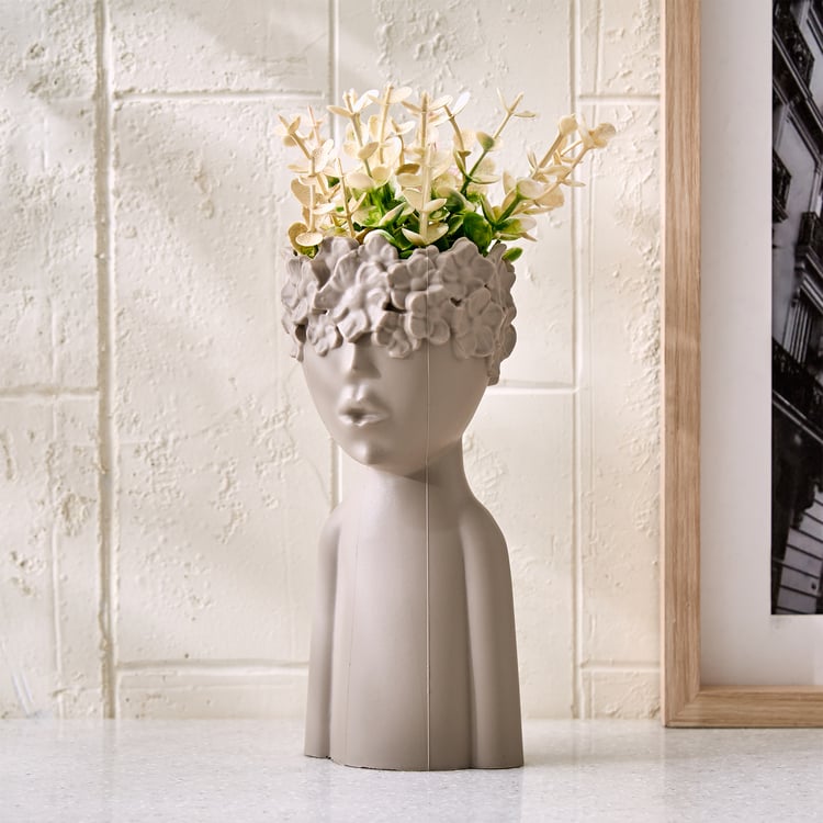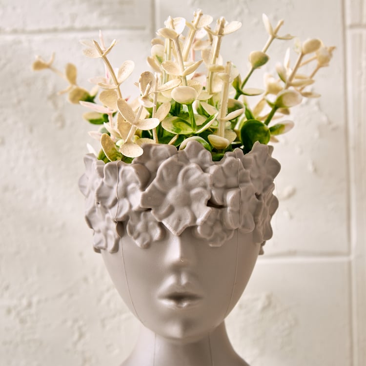 Add a unique touch to your decor with this artificial plant with a pot. Made of durable PS and PES, the lifelike plant brings a fresh vibe to any room while the creative pot adds a playful and stylish element to your space. Featuring a human bust with a plant growing from the head, this striking piece combines art and nature.