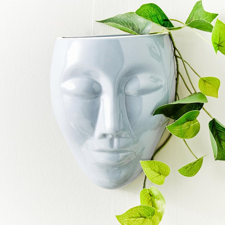 Keep your house cheerful and aesthetic with a wall-mounted planter. It is made from a durable material like ceramic, has a textured surface, and has a face-shaped design.