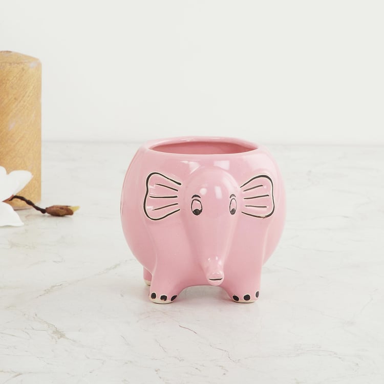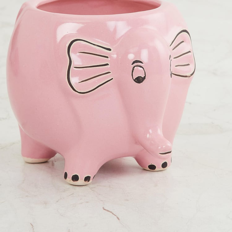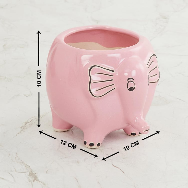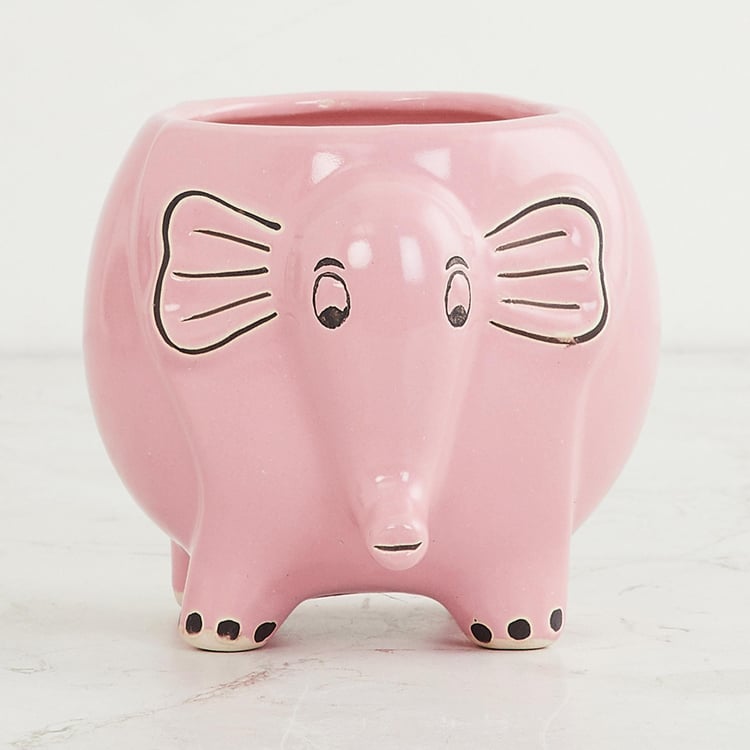 Malta Pink Ceramic Elephant Shaped Planter - 12 x 10 cm