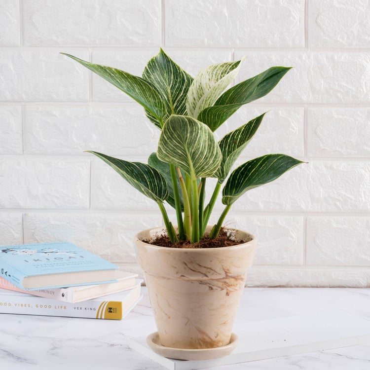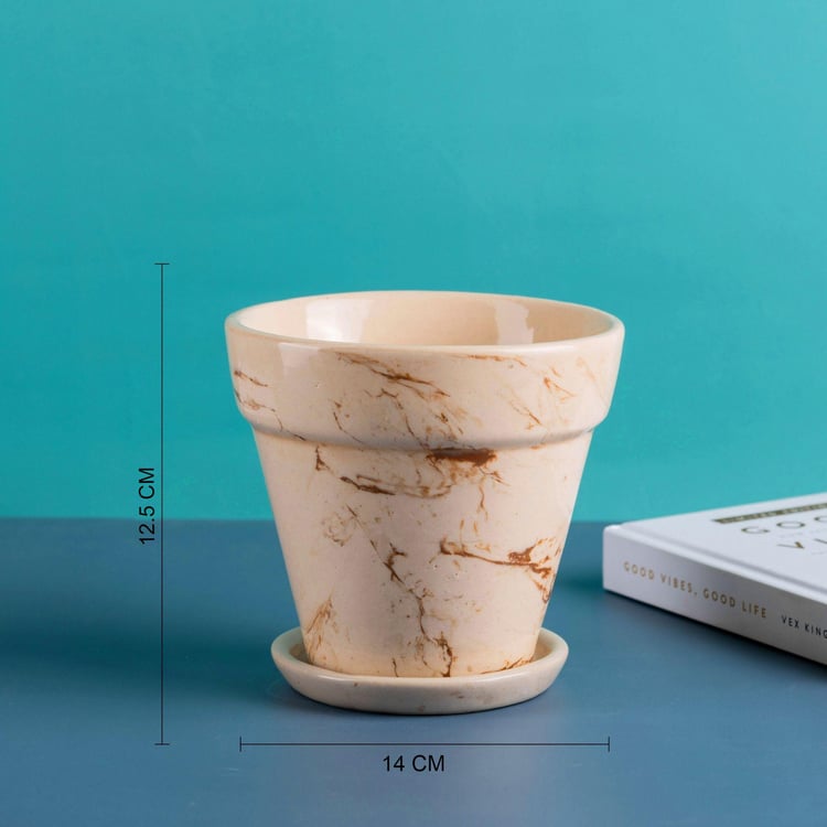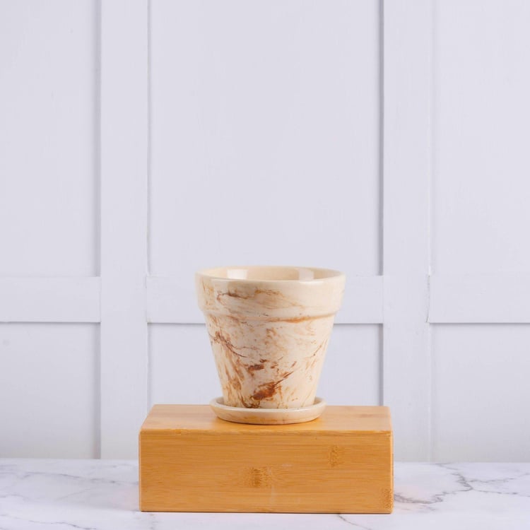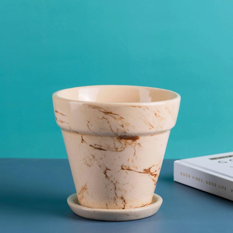 NURTURING GREEN Mystique Fusion Brown Printed Ceramic Floor Planter with Tray