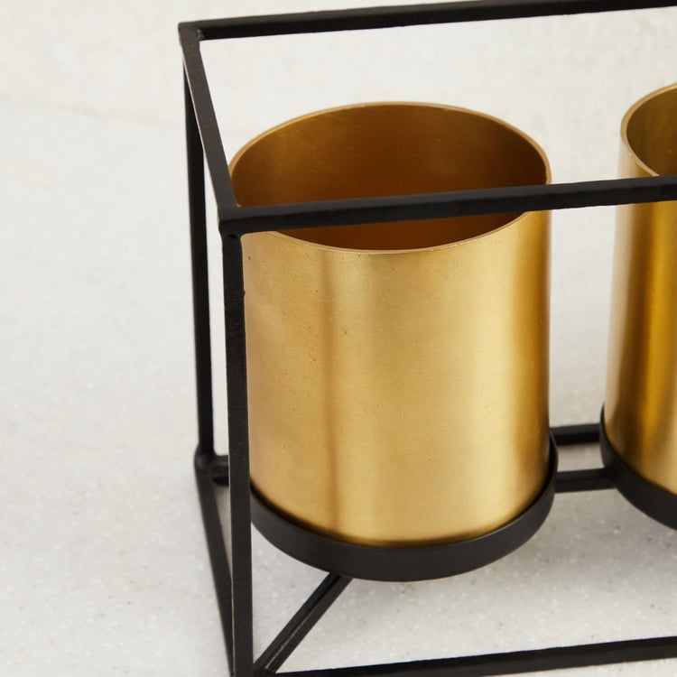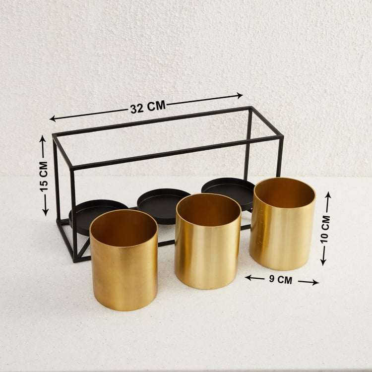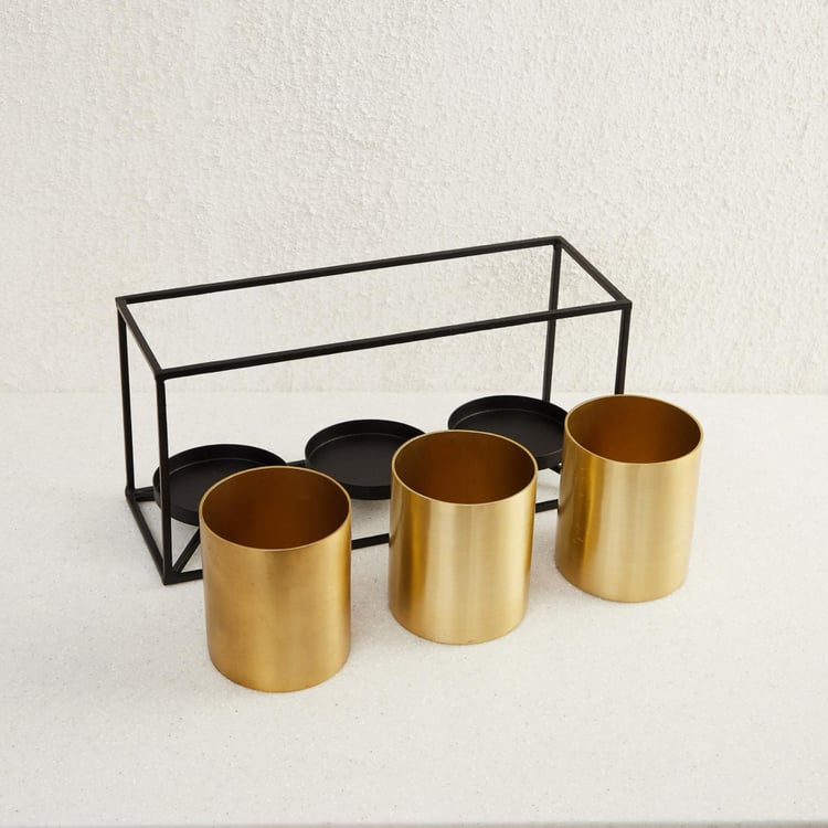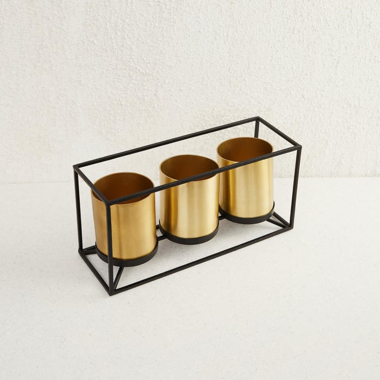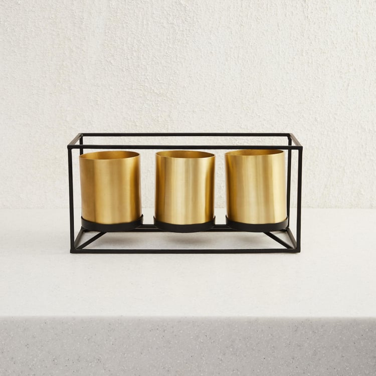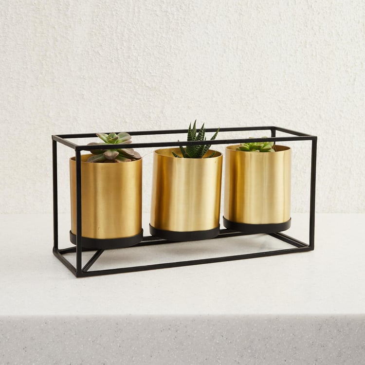 Valencia Back Wall - Gold Solid Metal Floor Planters With Stand - Set Of 3