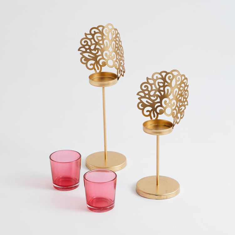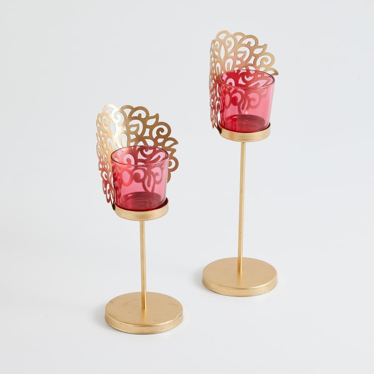 Corsica Bela Set of 2 Metal T-Light Holders with Stand
