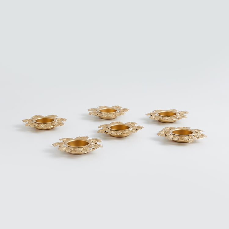 Give a finishing touch to your decor with this set of T-light holders. Made from iron, this set includes 6 individual t-light holders with floral accents that instantly elevates your decor.