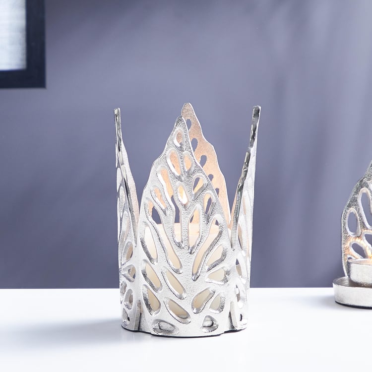 Adorned by a cut-out design and a sleek finish, this candle holder is a great addition to your living room decor for a refreshing appeal. Place this in the home indoors and enhance the overall interior of your homefront.