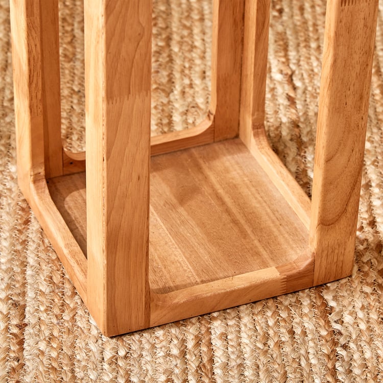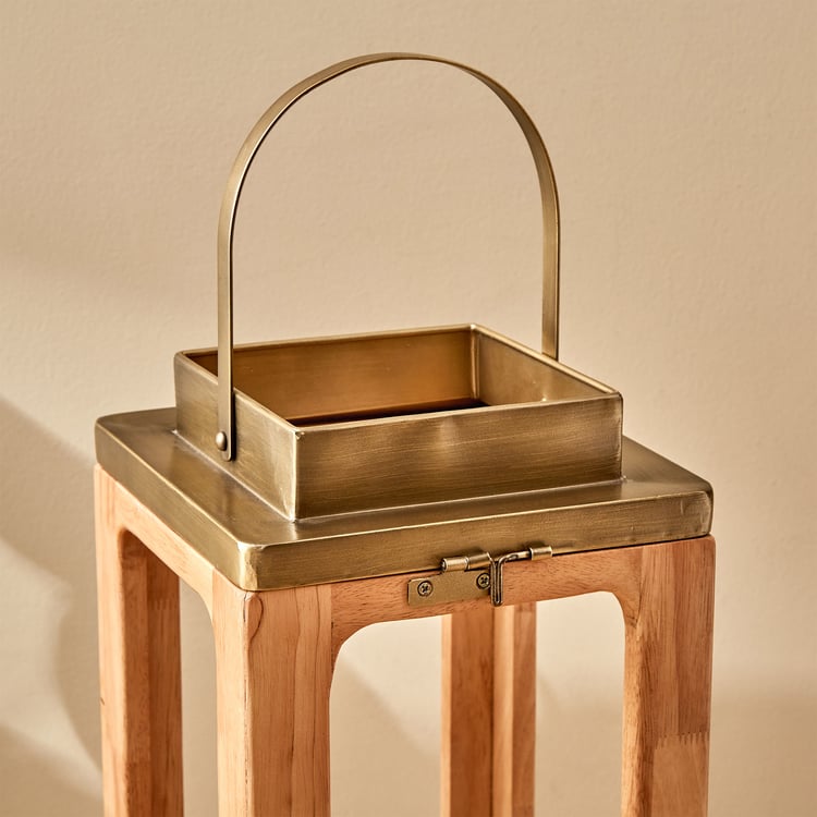 Infuse your home with rustic elegance with this lantern. Meticulously crafted from wood, it features open panes, a metal top for ventilation, and a hanging ring. It is perfect for holding T-Light or pillar candles, adding a cosy, inviting glow to any setting.