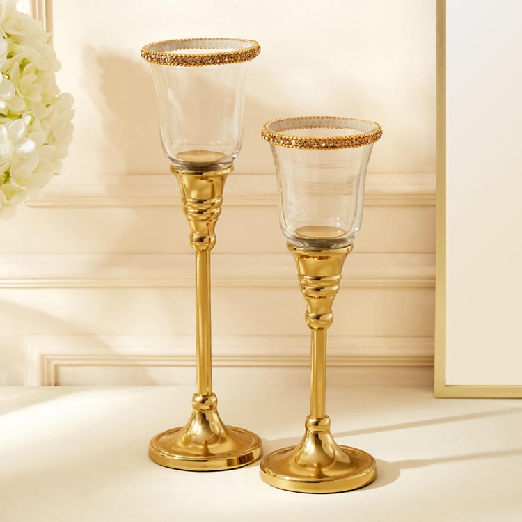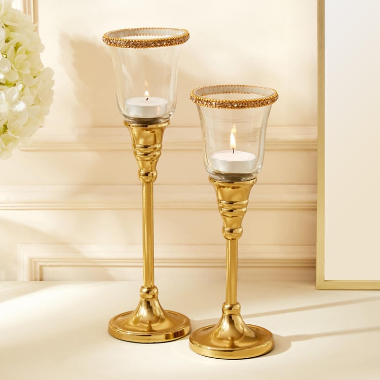 Enhance your decor and induce a elegant appearance in your home with these pedestal t-light holders. Made with sturdy glass and metal stand along with a free-standing feature, this t-light holder set with a visually appealing structure can be an ideal decorative accessory for your home.