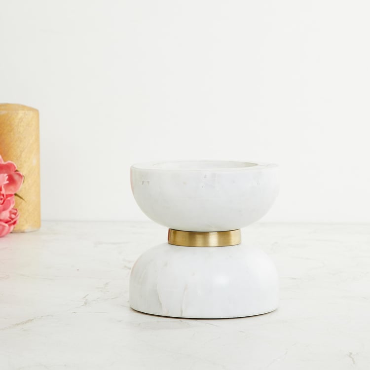 Fiesta White Textured Ceramic Candle Holder- 12.5 cm