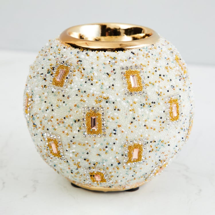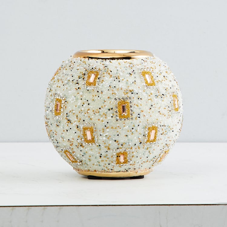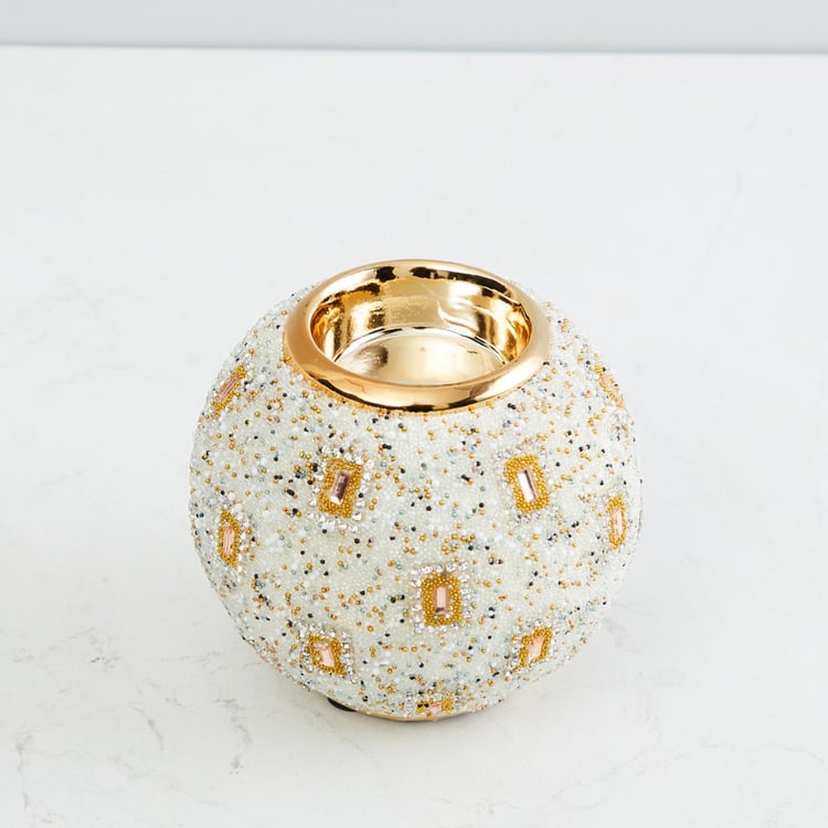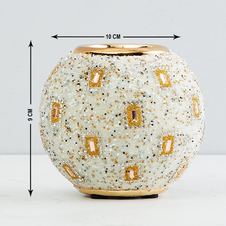 Galaxy Round-Shaped Beaded T-Light Holder - 10x10x9 cms.