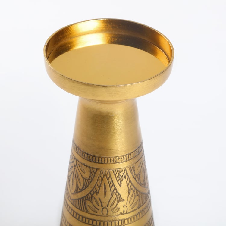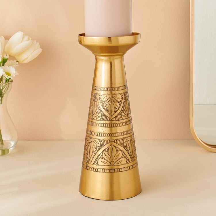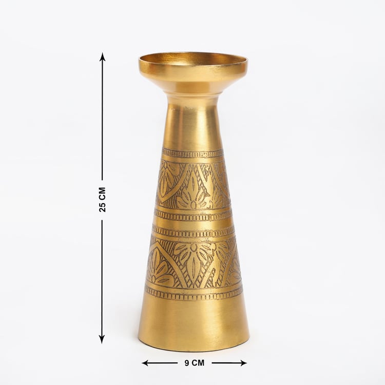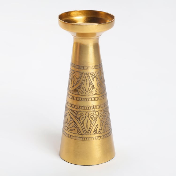 Add a crafty presentation at your dining table to amp up the ambiance. This niche candle holder designed in an etched design in metal elevates any dining area.