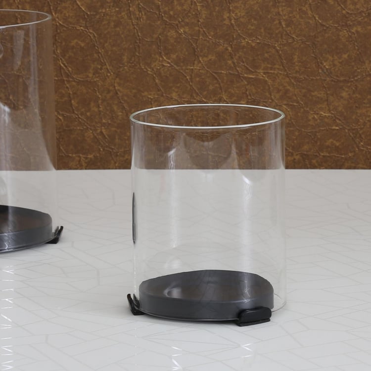 Refined and classic, this Neptune clear glass features a metallic base.