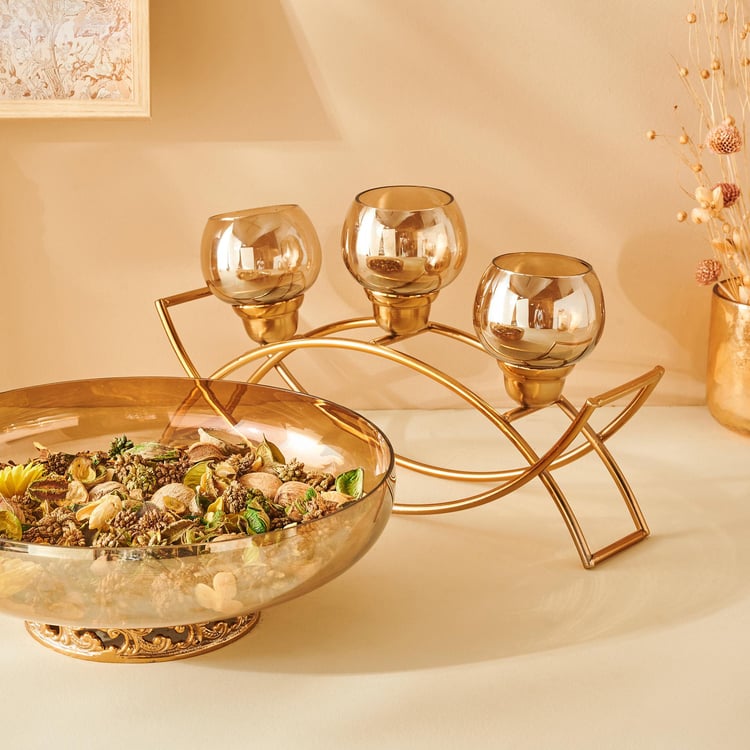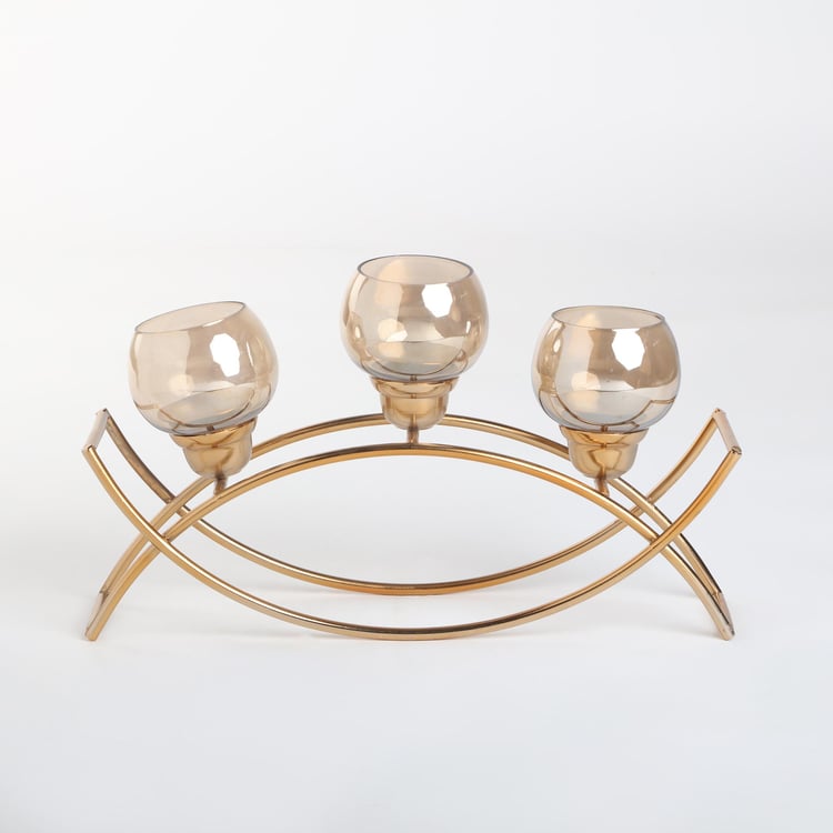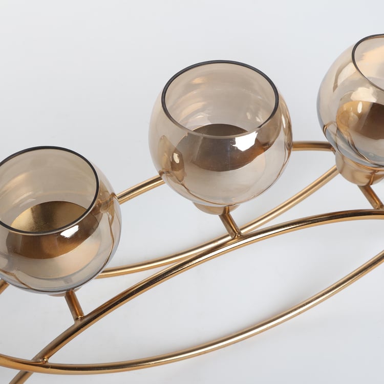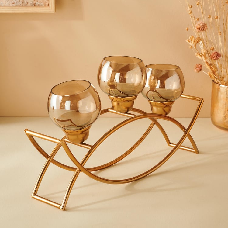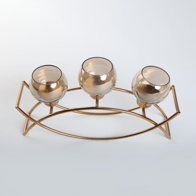 Create the perfect candle-lit ambiance in these cylindrical t-light holders that are made of a golden-colored iron frame, with clear glass sides that offer functionality and aesthetic appeal simultaneously.