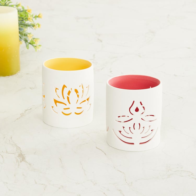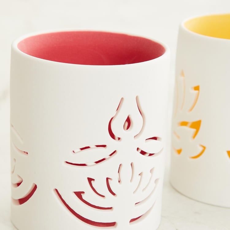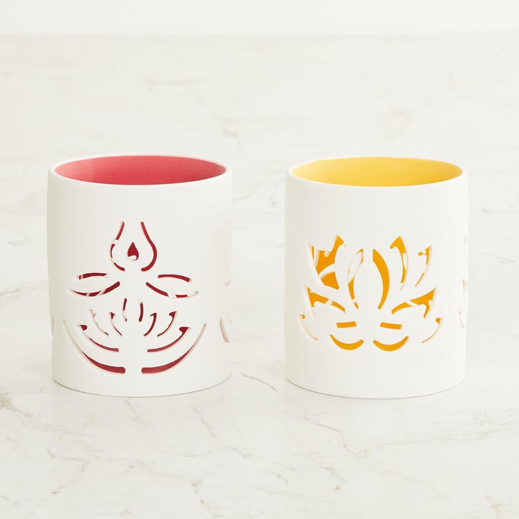Shalimar Multicolour Ceramic T-Light Holder - Set of 2