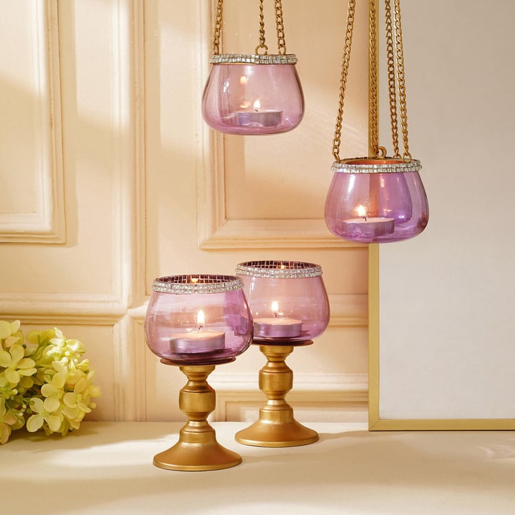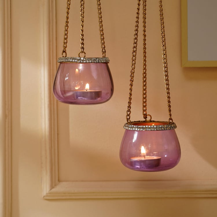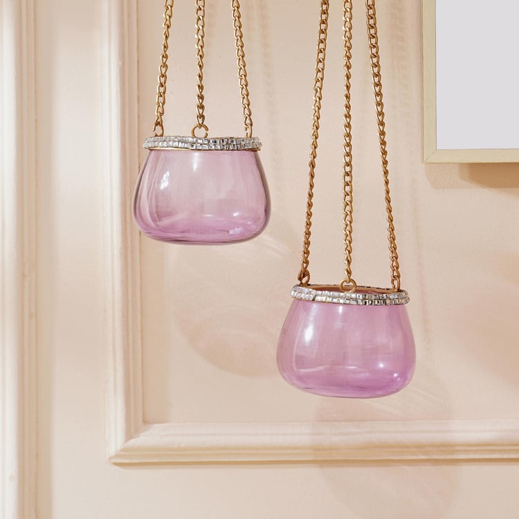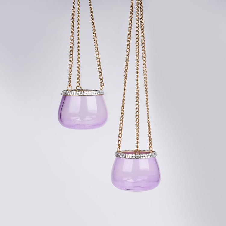 Shalimar Set of 2 Glass Embellished Hanging T-Light Holders