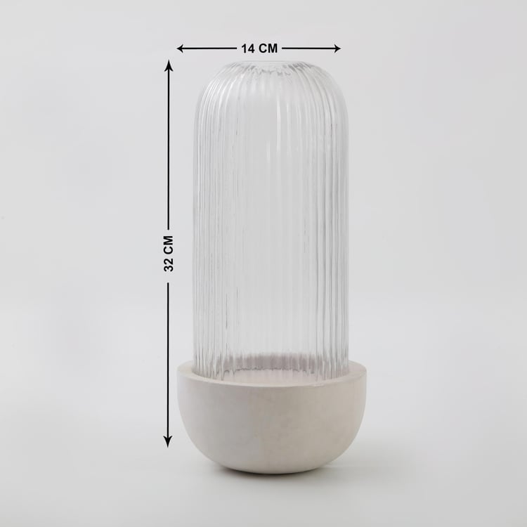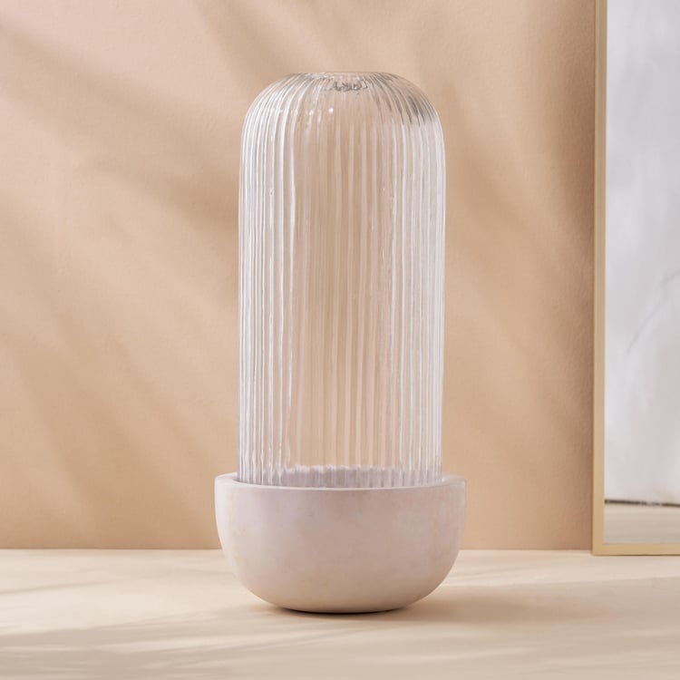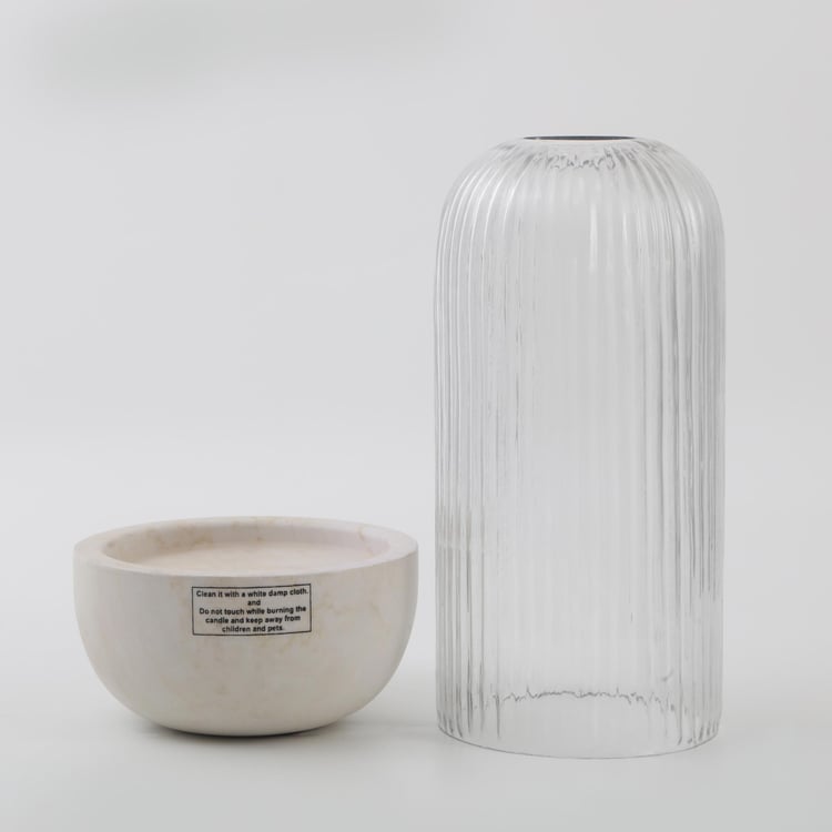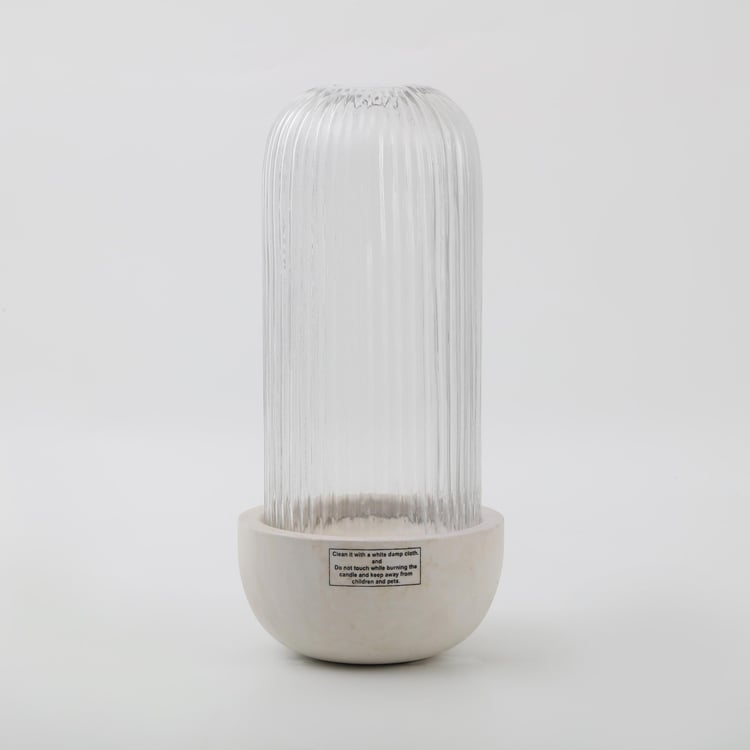 Brighten up your home with this elegant hurricane candle holder. It features a cylindrical design, a ribbed surface, and a marble look base for an added flair.